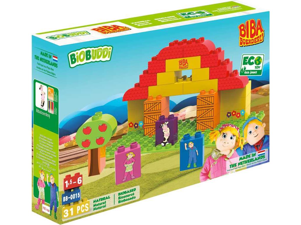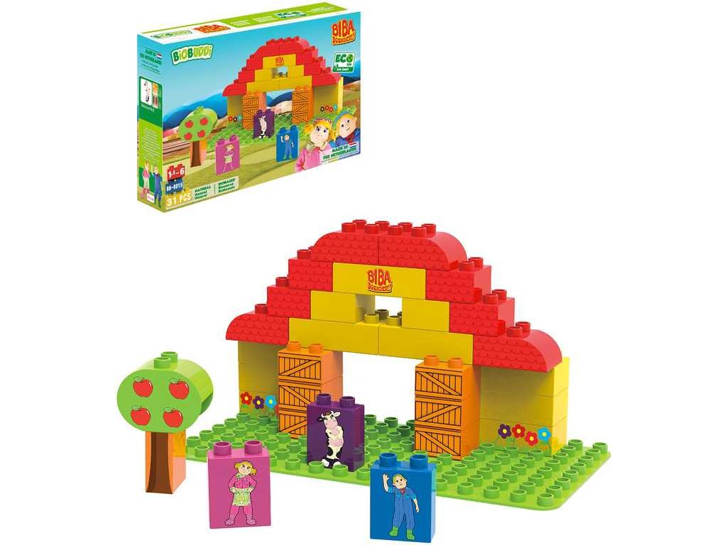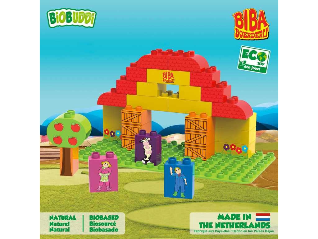 BiOBUDDi - Farma - unikátní Eco stavebnice vyrobená z cukrové třtiny, z produktové řady BIBA Boerderij, pro všechny tvořivé děti, a jejich ekologicky smýšlející rodiče. Baleno v krabici.Zabavte své děti ekologickou stavebnicí BiOBUDDi s obrázky s motivem farmy, z řady BIBA Boerderij. Umístěte nálepky na jednotlivé hrací kostky a zábava může začít. Rozvíjejte kreativitu a jemnou motoriku vašich dětí. Postavte společně model farmy, který bude nejen hezky vypadat, ale bude sloužit i jako učební pomůcka. Vzhled jednotlivých kostek je jen na vás. Celá sada nabízí 31 různě barevných dílků. Veškeré součásti jsou vyrobeny výhradně z BIO materiálů.