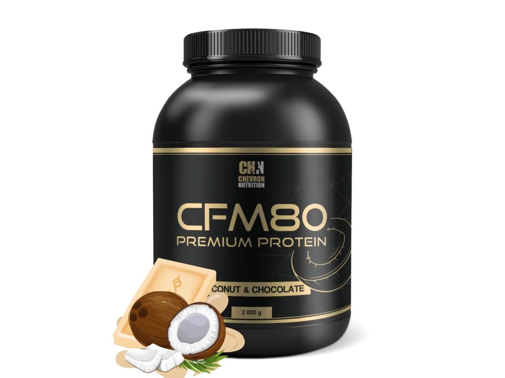 Hledáte kvalitní zdroj proteinu? CFM80 Premium protein je alternativním a vhodně zvoleným zdrojem mimořádného proteinu obohacený o řetězec aminokyselin, které jsou nezbytné pro svaly vyčerpané po náročných trénincích a trávicí enyzymy DigeZyme, pro snazší stravitelnost. CFM80 od značky Chevron Nutrition se vyznačuje skvělou rozpustností a je pro Vás připraven ve výtečných příchutích. Mimo to Vám zajistí budování a maximální nárůst čisté svalové hmoty, a to bez zbytečných tuků.