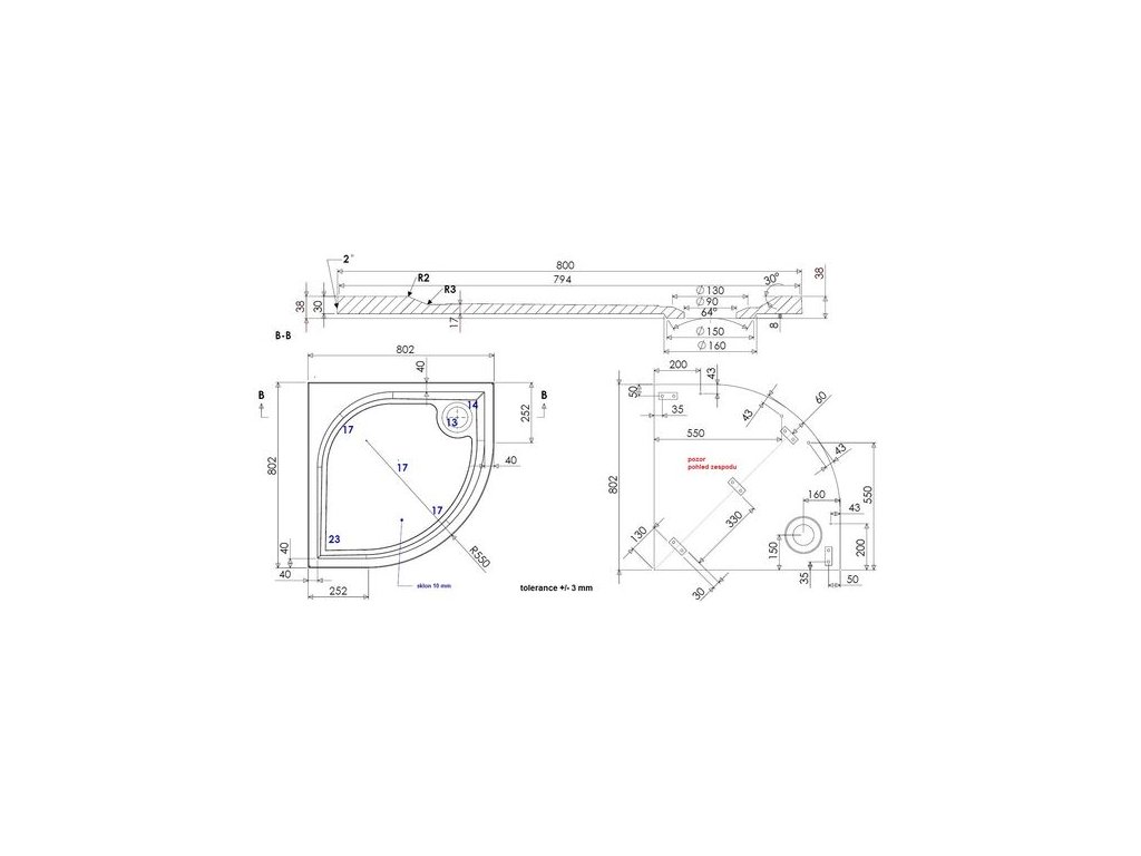EBS Aria Vanička čtvrtkruhová 80x80 litá