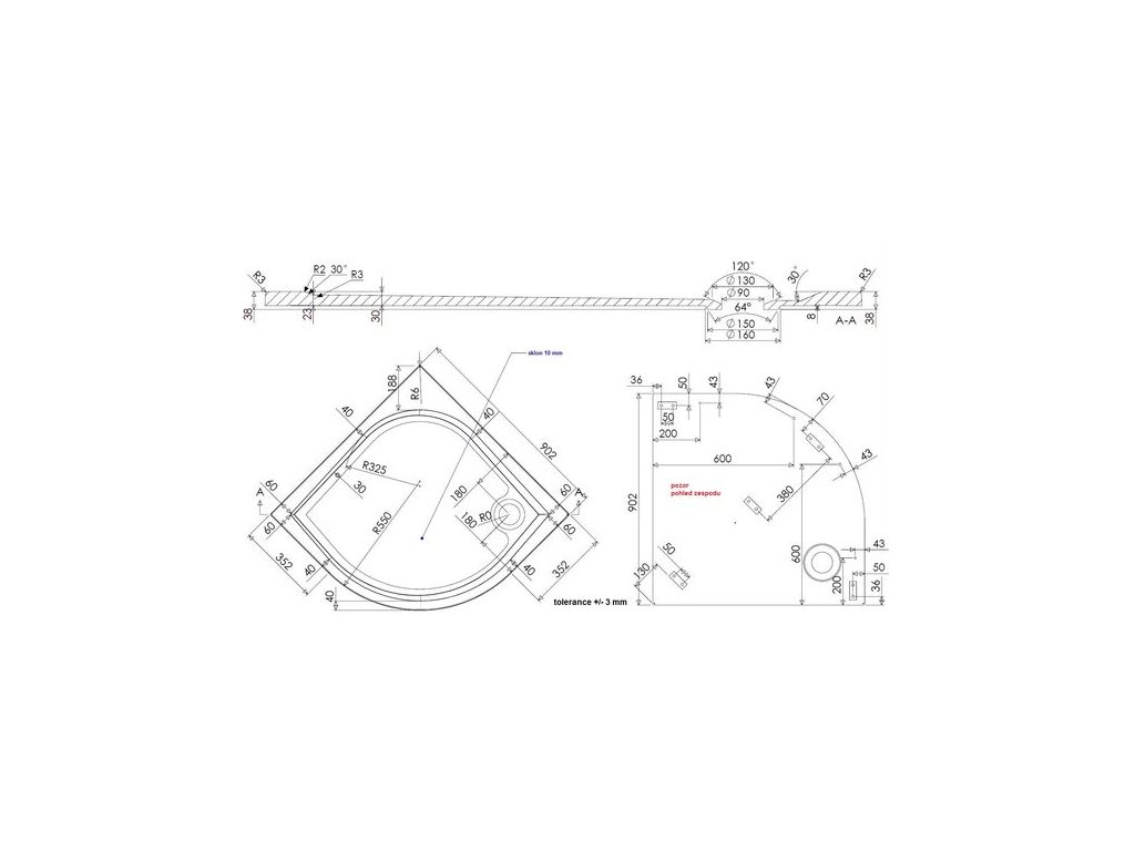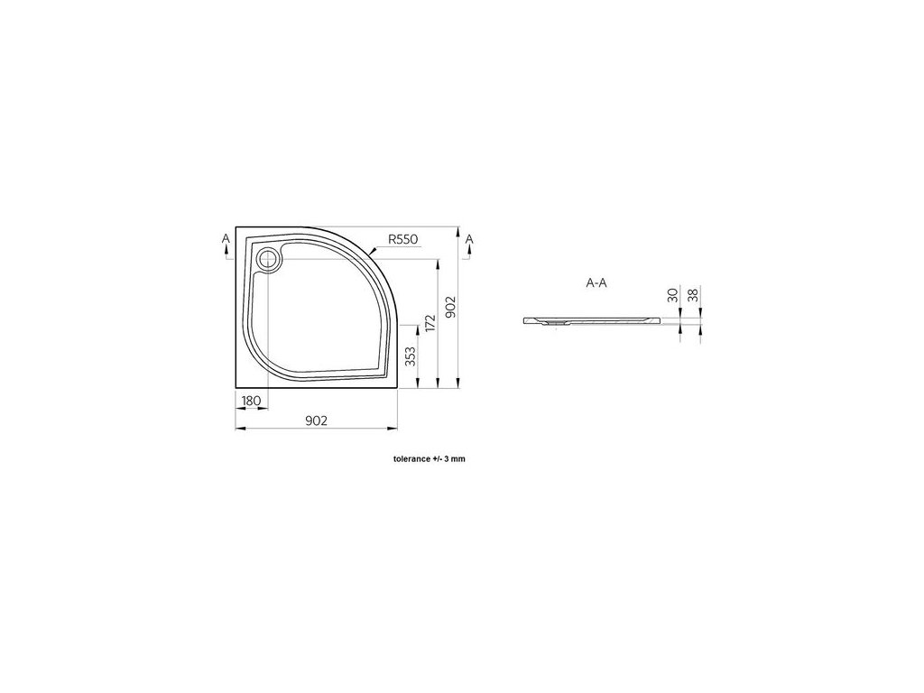 EBS Aria Vanička čtvrtkruhová 90x90 litá, rádius 550