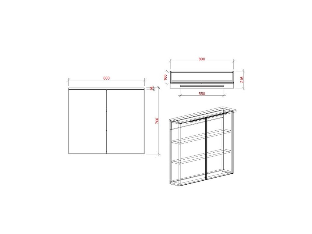 - dvoukřídlá dvířka se zrcadlem