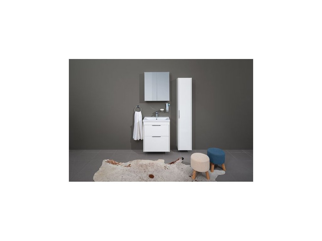 Zahrnuje oblíbené šířky vhodné do všech velikostí koupelen. Samozřejmostí je pomalé dovírání. Hrany jsou laserově opracovány. K výběru nabízíme 2 odstíny: lesklá bílá a dub Riviera. Skříňky jsou dodávané smontované.