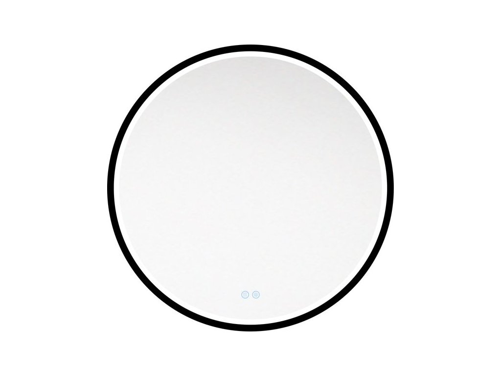 Designové kulaté zrcadlo Emilia s LED osvětlením a černým rámem. Osvětlení zrcadla se spouští dotykovým senzorem umístěným ve spodní přední části zrcadla.