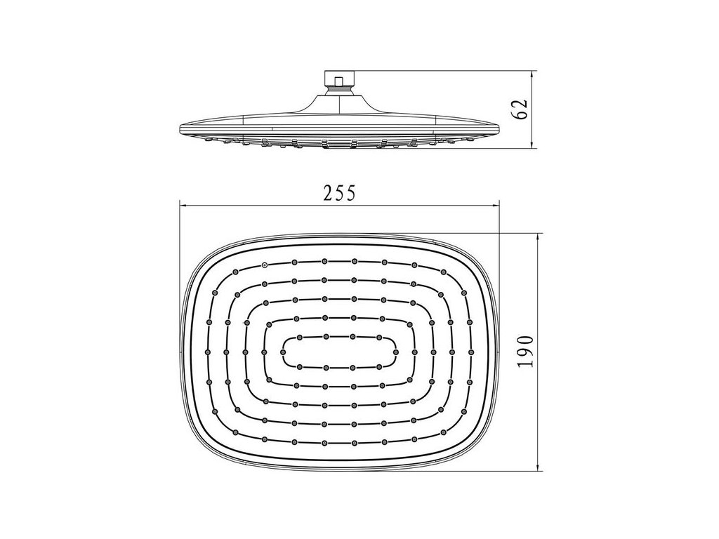 Horní sprcha o průměru 25,5 x 19 cm vyniká moderním designem, vysokou variabilitou a především umožňuje téměř libovolnou kombinaci s příslušenstvím sprchového programu.