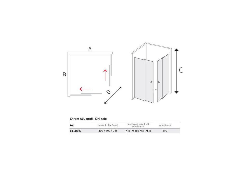 EBS Linea Sprchový kout 80cm čtverec, chrom/čiré sklo