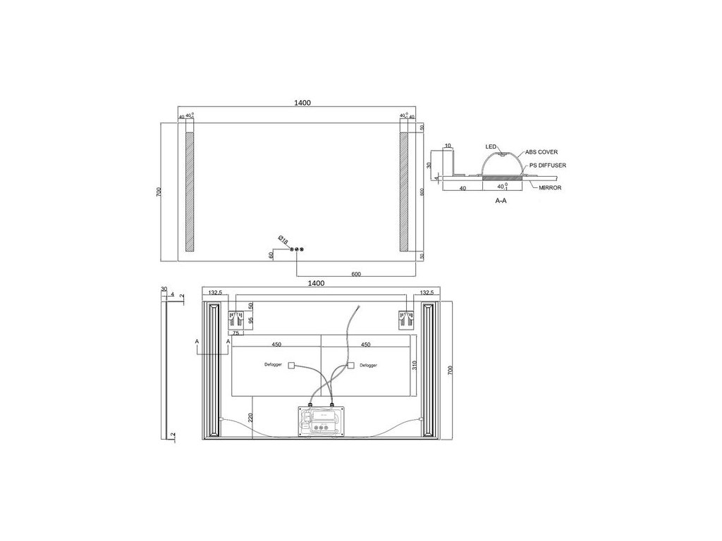 EBS Mars Zrcadlo 140 x 70 cm s LED osvětlením a dotykovými tlačítky