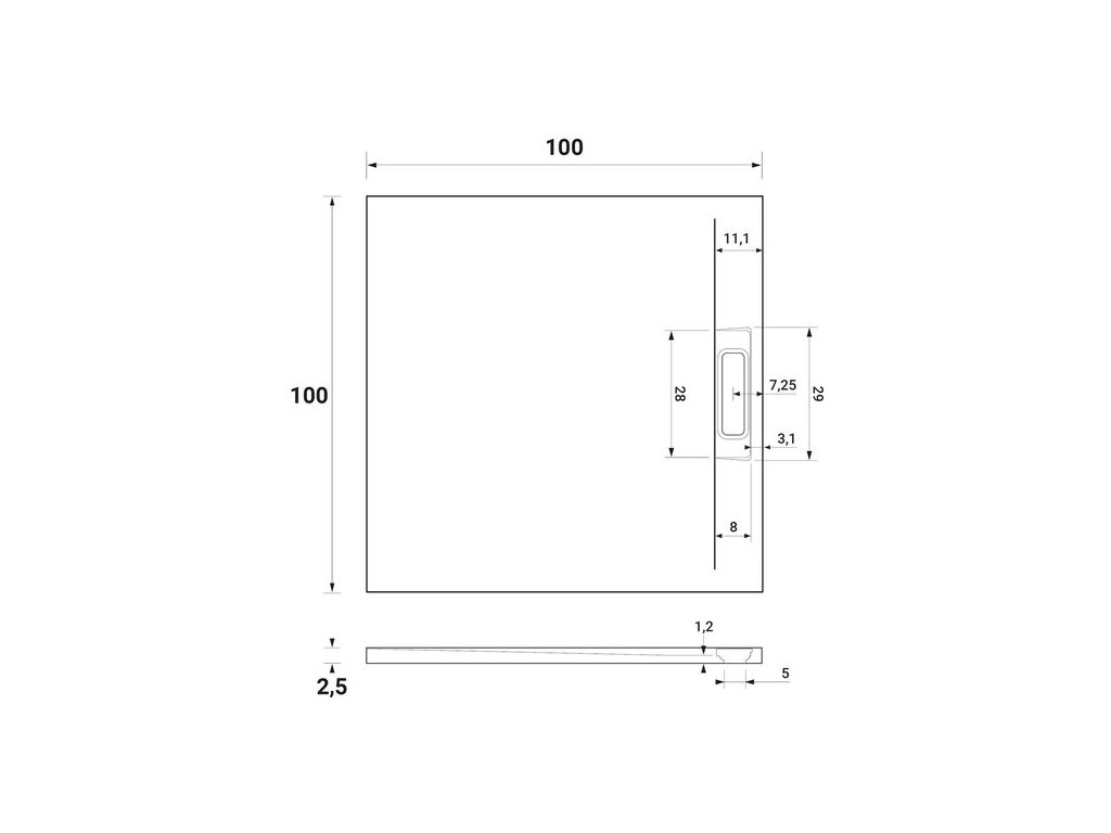 - sifon není součástí balení a je nutné ho dokoupit, krytka sifonu s povrchem imitujícím břidlici je součástí balení
