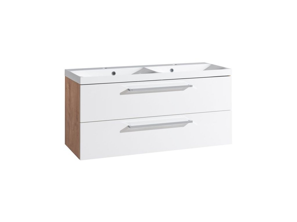 EBS Pure Skříňka s dvojumyvadlem 121 cm, bílá/dub