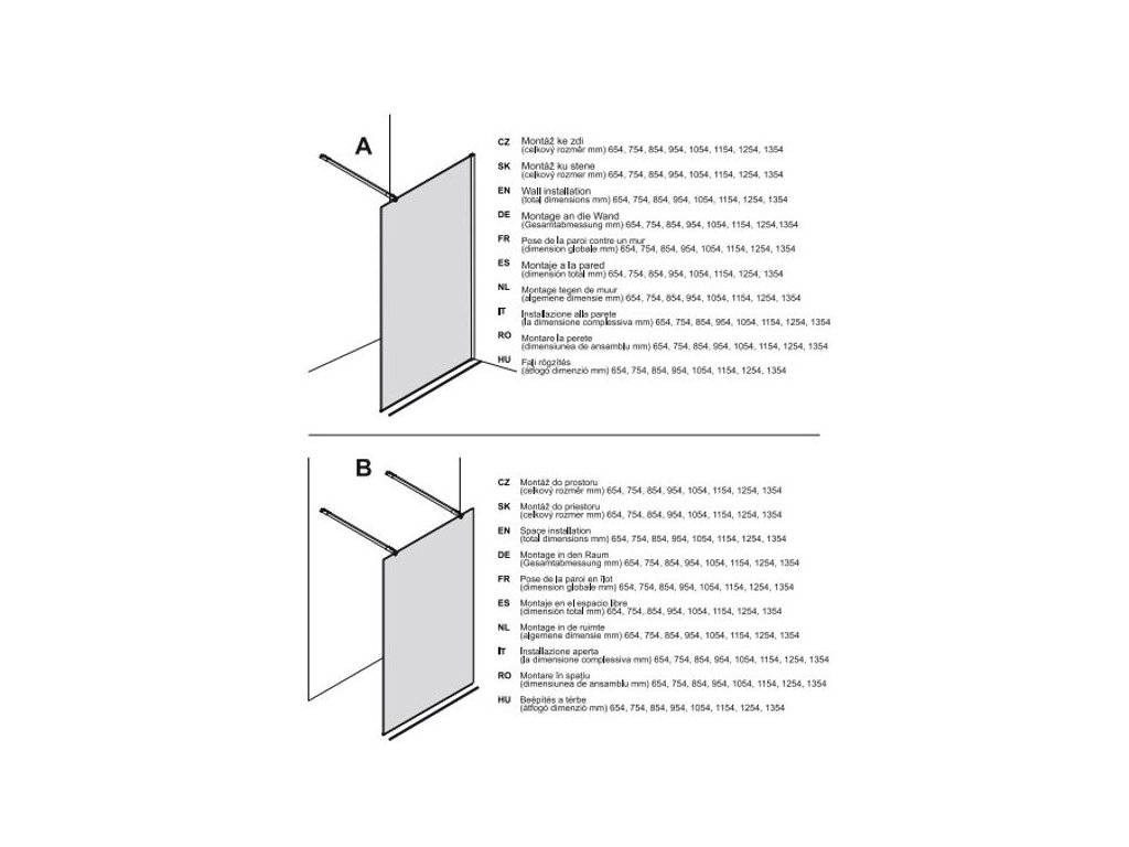 - 1x tuto Walk-In Relax sprchovou stěnu (obsahuje sklo, 1x upevňovací rameno, spodní lišta)
