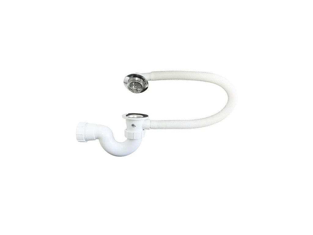 Vanový sifon pro optimální připojení, s pryžovým těsněním, včetně zátky a nerezové mřížky.
