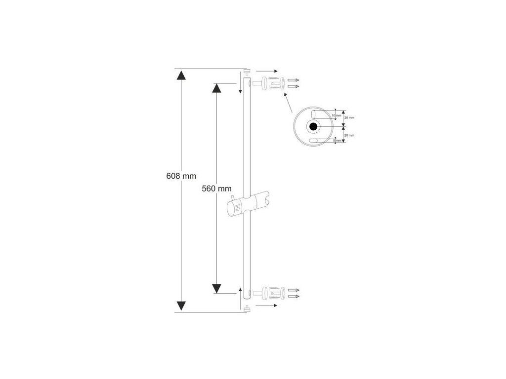 - Anti-twist: systém proti překroucení hadice - umístěný na straně s delším kónusem, montuje se na ruční sprchu