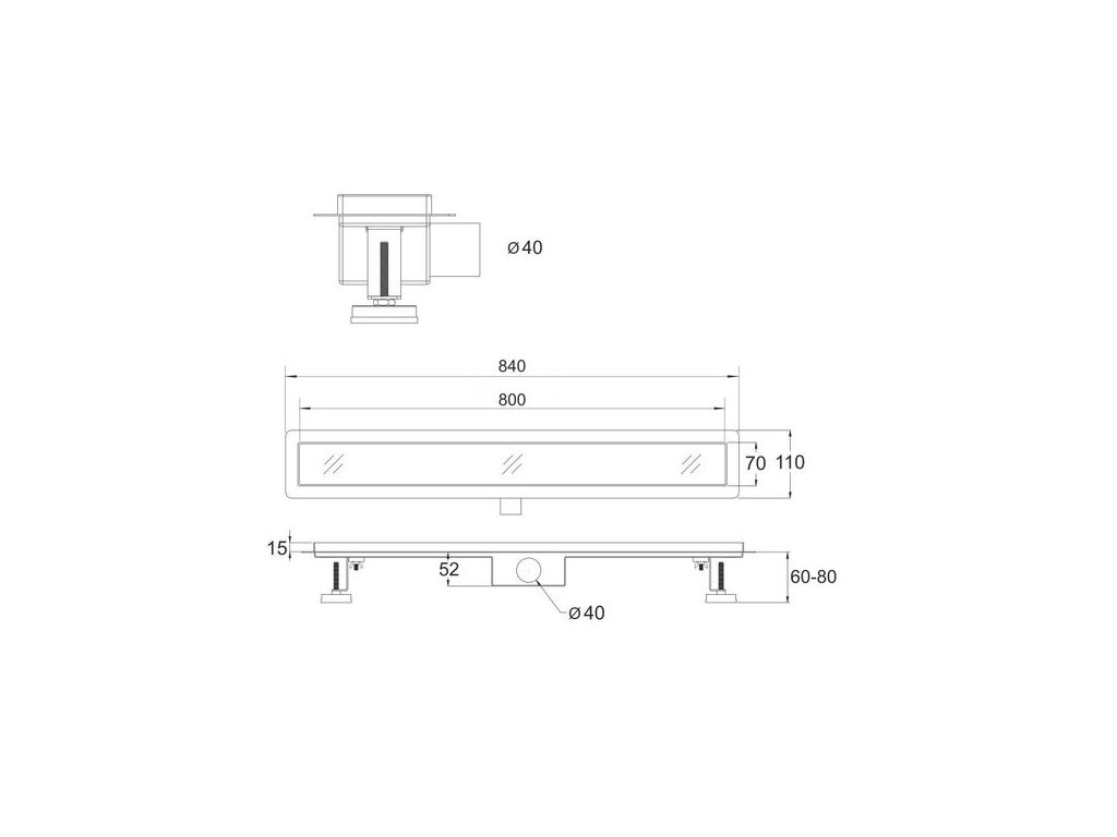 EBS Strip Odtokový sprchový žlab 80 cm s roštem a sifonem, nerez