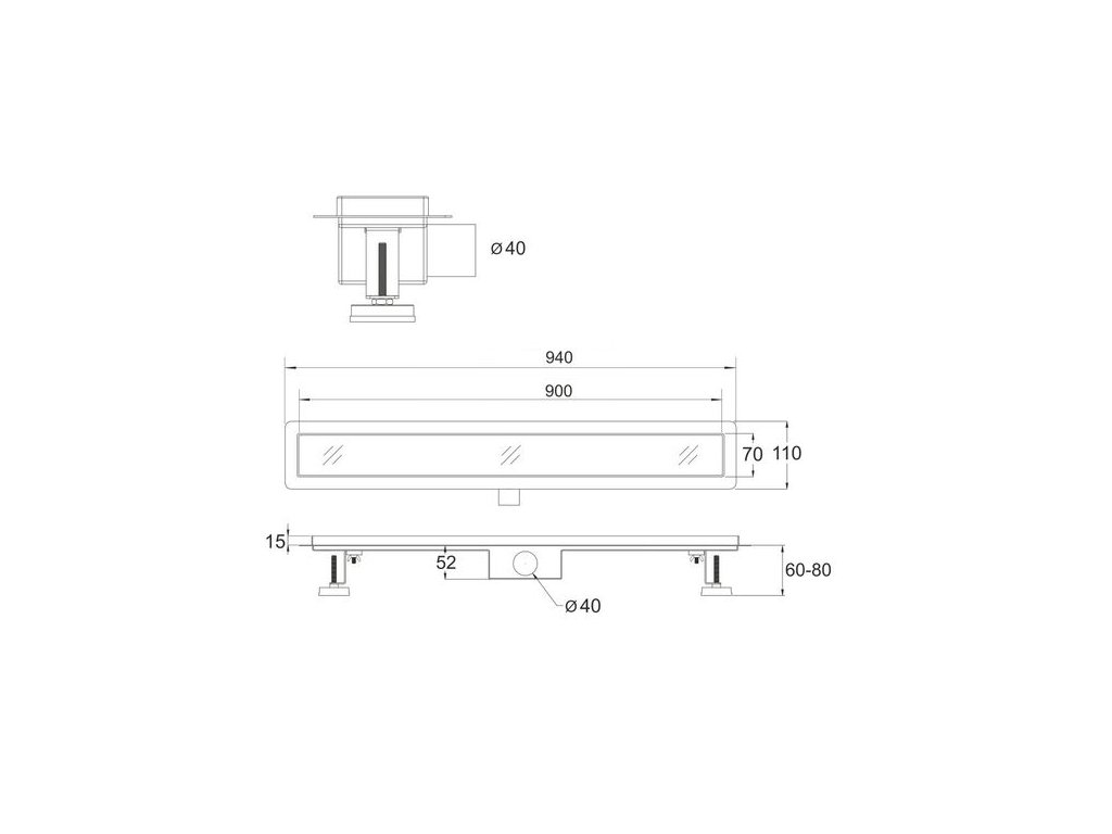 Odtokový žlab je dodáván včetně roštu TILE. Rošt je možné použít jako variantu, kdy je vidět jednolitá nerezová plocha, nebo je možné do roštu nalepit přímo dlažbu.