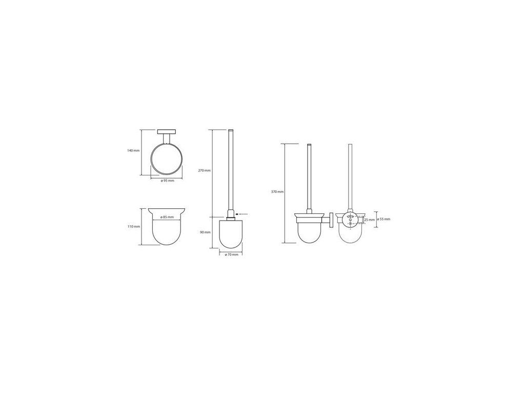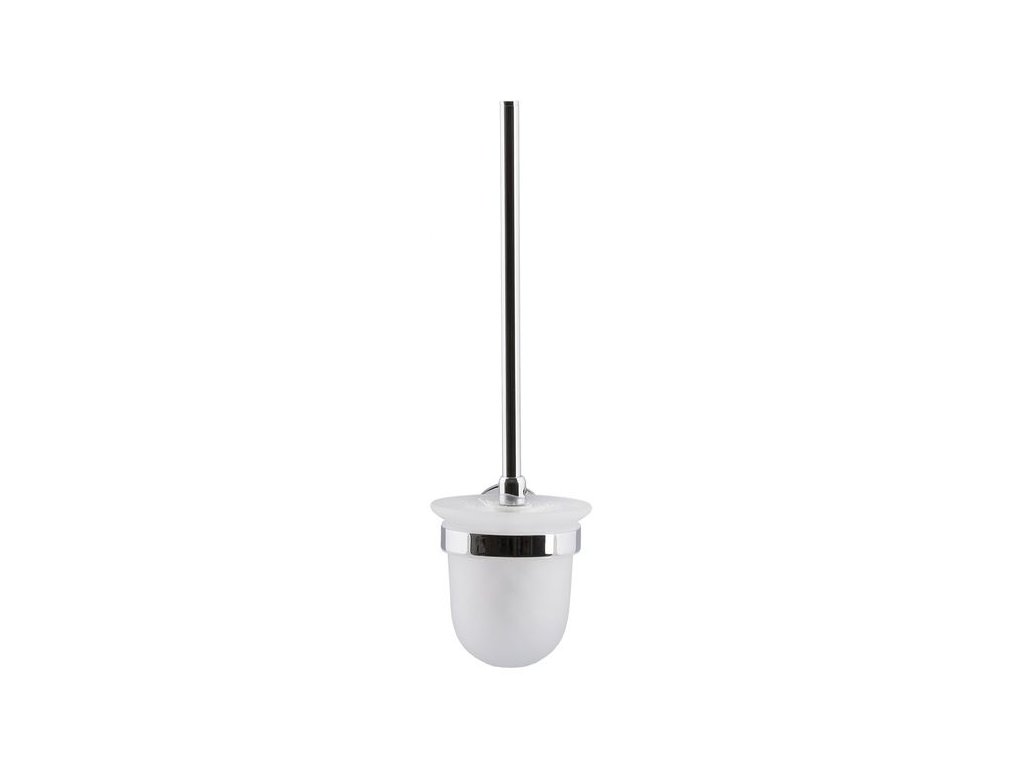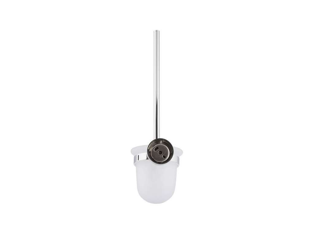 Nádobka z matného skla je usazena v chromovém kruhu s gumovým těsněním, které zabraňuje viklání a chrání sklo před poškrábáním kovem. Skleněnou část lze kdykoliv jednoduše vyjmout a umýt v umyvadle. Hlavní výhodou je však nástěnná instalace. Štětka má své pevné místo, nikde nepřekáží a podlaha pod ní se snadno udržuje v čistotě.