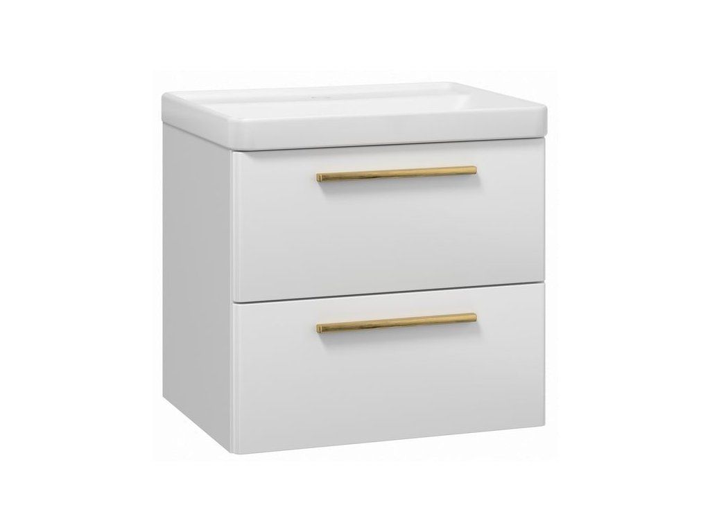 EBS Urban Skříňka s umyvadlem 61cm, bílá lesk/madlo zlatá kartáčovaná