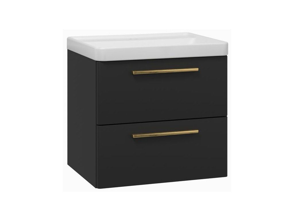 EBS Urban Skříňka s umyvadlem 61cm, černá mat/madlo zlatá kartáčovaná