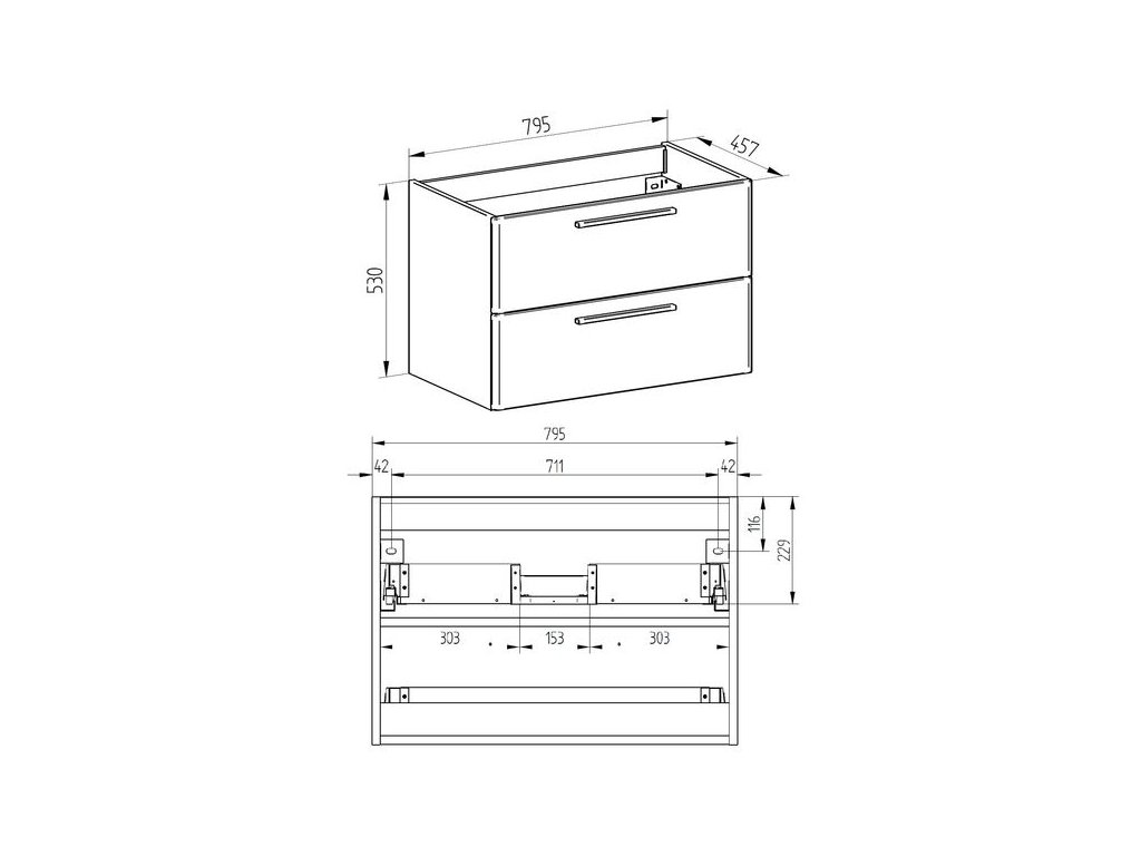 - v horní zásuvce skříňky je vykrojení pro umyvadlový sifon