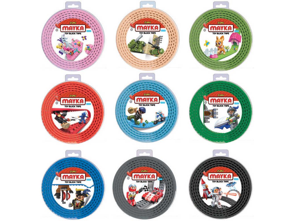 Mayka není jenom obyčejná lepící páska, je to páska, na které si můžete něco postavit ze svých kostek.S touto lepící páskou se dají dělat opravdu věci! Bláznivé, střeštěné, plné nápadů a projektů, nad kterými budou vaši kamarádi kroutit hlavou, jakmile vkročí do vašeho pokoje. Mayka je lepící páska, kterou můžete přilepit třeba na stůl, rádio, skříň poličku i zeď. Prostě všude, kam vás jenom napadne. Můžete ji nalepit svisle i vodorovně, na stůl i pod stůl. Ale to není všechno, můžete ji sloupnout a zase nalepit. Je kompatibilní s běžně dostupnými stavebnicemi a vyrábí se v celé řadě barevných variant.