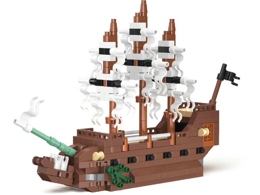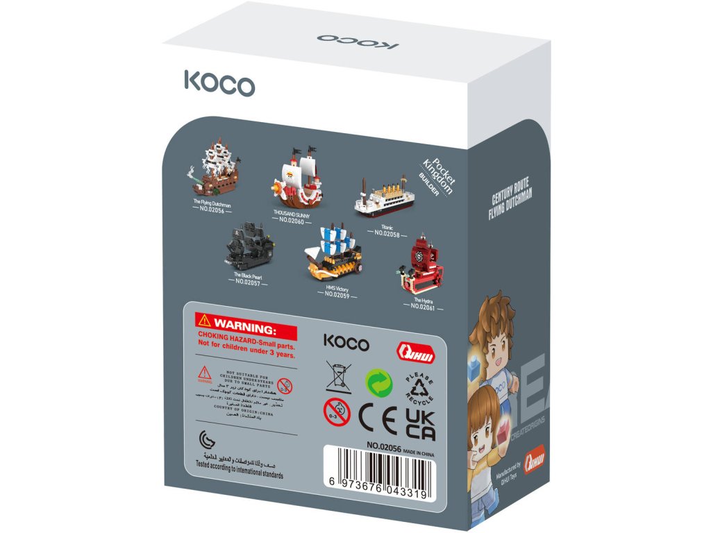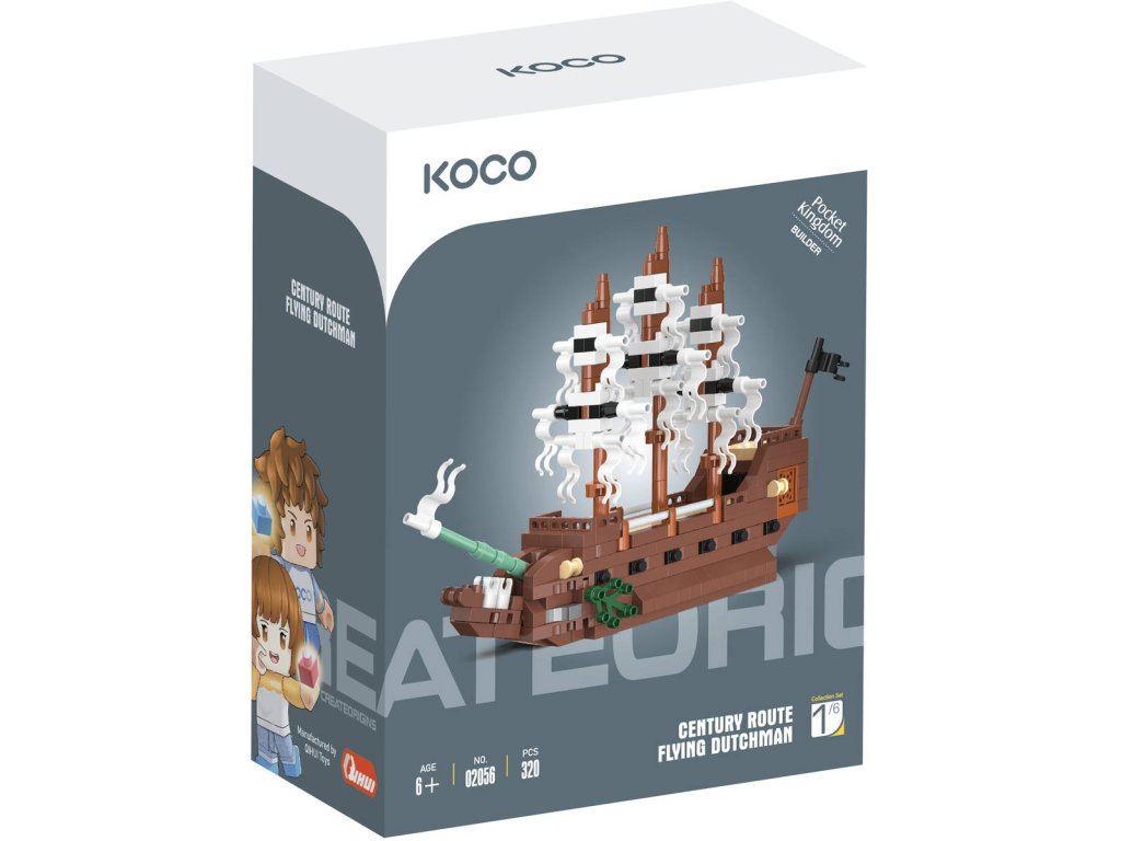 Plastová skládačka stavebnice mini KOCO: plachetnice Bludný Holanďan. Malé kostičky, 320 dílků, velikost modelu 17 x 9 x 3cm.Stavebnice KOCO, to jsou velké příběhy v malých detailech. Sestavte si krásný model lodě. Skvělý tip pro procvičení jemné motoriky rukou. Balení obsahuje podrobný obrázkový návod.