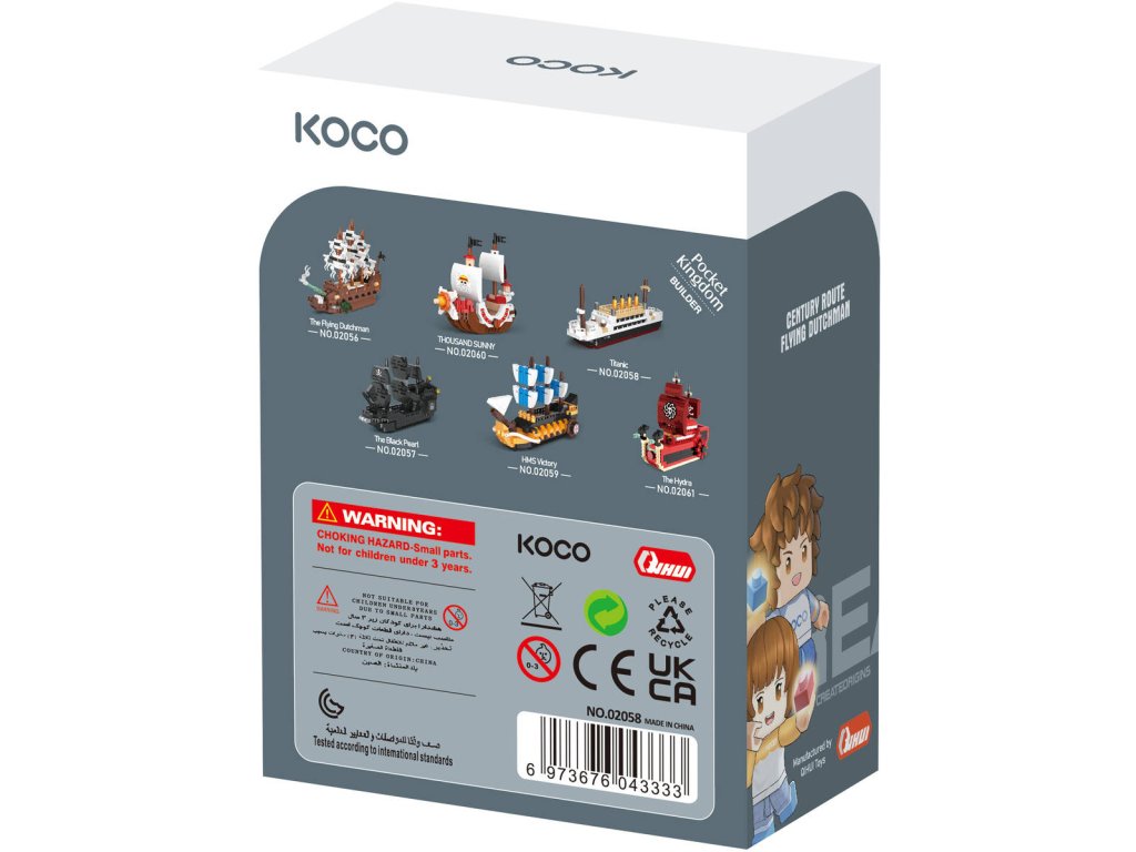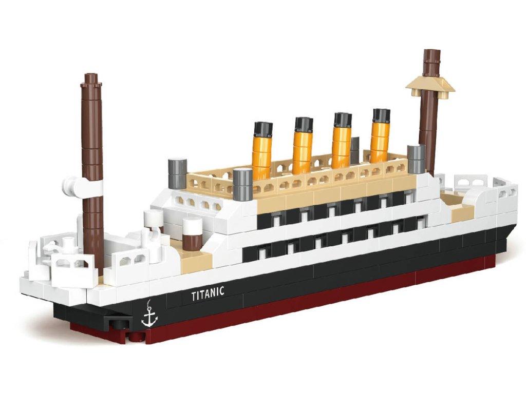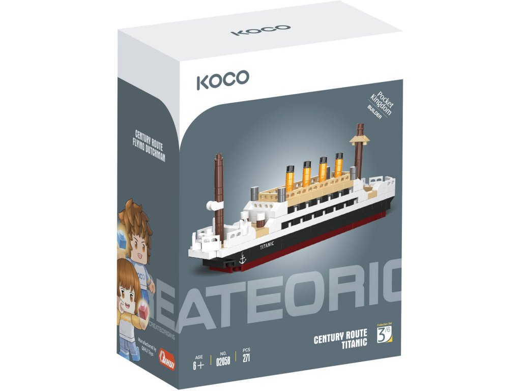 Plastová skládačka stavebnice mini KOCO: zaoceánský parník Titanic. Malé kostičky, 271 dílků, velikost modelu 17 x 9 x 3cm.Stavebnice KOCO, to jsou velké příběhy v malých detailech. Sestavte si krásný model lodě. Skvělý tip pro procvičení jemné motoriky rukou. Balení obsahuje podrobný obrázkový návod.