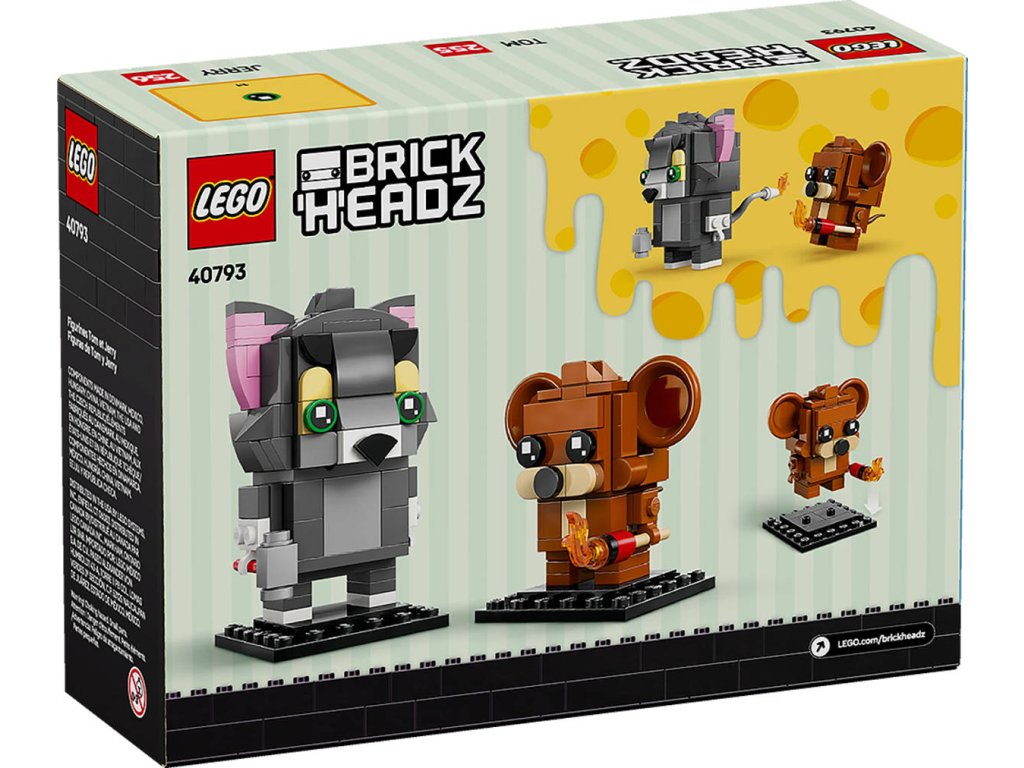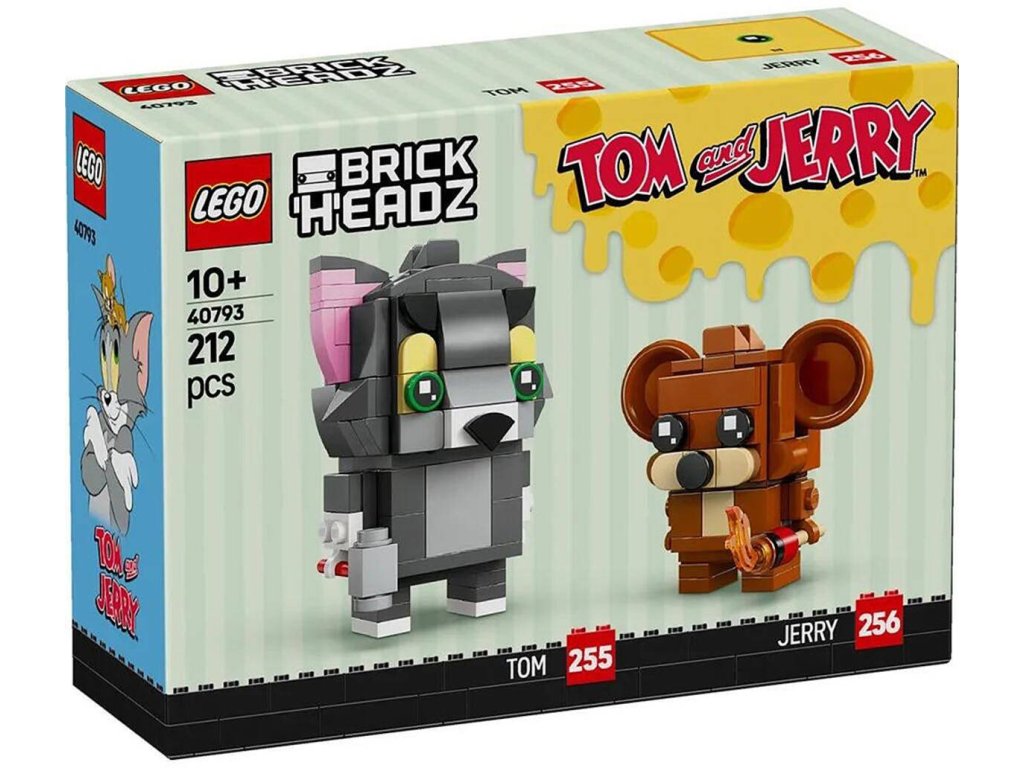 LEGO 40793 - Figurky Tom a Jerry z produktové řady LEGO BRICK HEADZ - Kvalitní dětská plastová stavebnice v krabici.Oslavte 85 let dovádění s Tomem a Jerrym se stavebnicí LEGO rickHeadz Figurky: Tom a Jerry. Vdechněte život známé animované dvojce a postavte si figurky kocoura a myši s doplňky. Jerry zapálí Tomův ocas pomocí zápalky a Tom pronásleduje Jerryhos kladivem. Figurka Toma má klasickou velikost BrickHeadz a figurka Jerryho je v miniaturní verzi. Tato stavebnice představuje skvělý dárek pro děti od 10 let a poslouží také jako zábavný výstavní model pro fanoušky nostalgických hraček s Tomem a Jerry m.