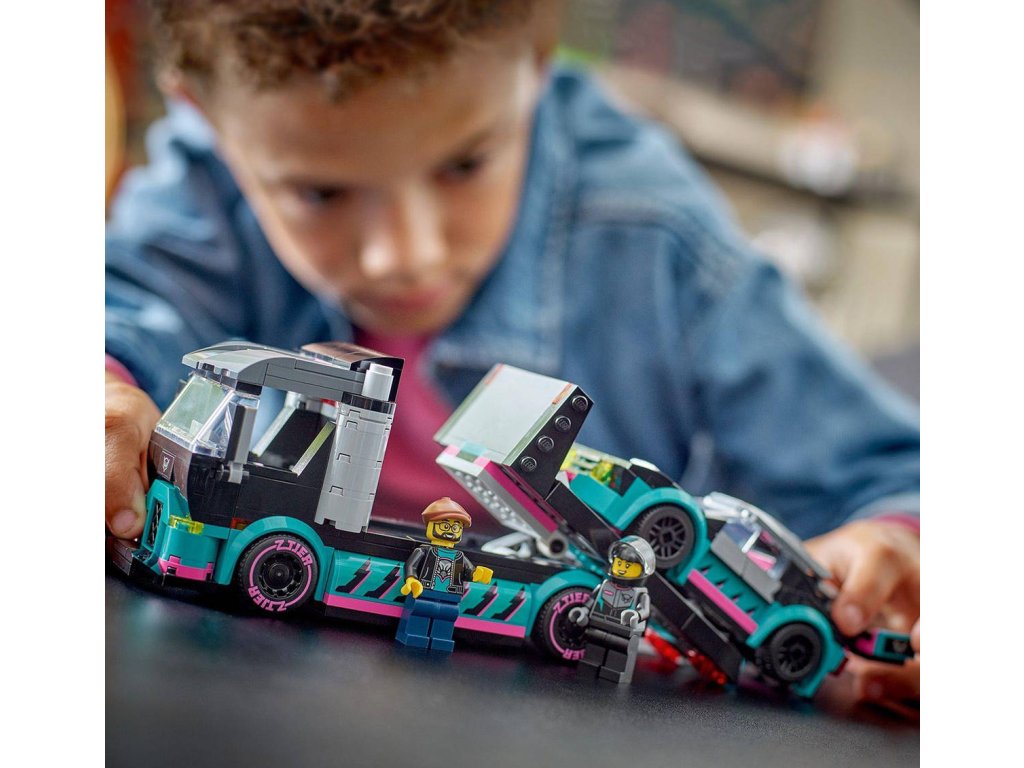 LEGO 60406 - Kamión se závodním autem z produktové řady LEGO CITY - Dětské plastové kostky v krabici.Vyrazte do akce se stavebnicí Kamión se závodním autem, který představuje perfektní dárek pro malé milovníky aut a kamiónů. Sada je určená pro děti od 6 let a najdete v ní závodní kamión s funkční nakládací rampou a parádní závodní auto se sníženým podvozkem a rozšířenými nárazníky. Nechybí ani minifigurka řidiče náklaďáku a závodního jezdce, se kterými vás čekají hodiny dobrodružství a zábavy.