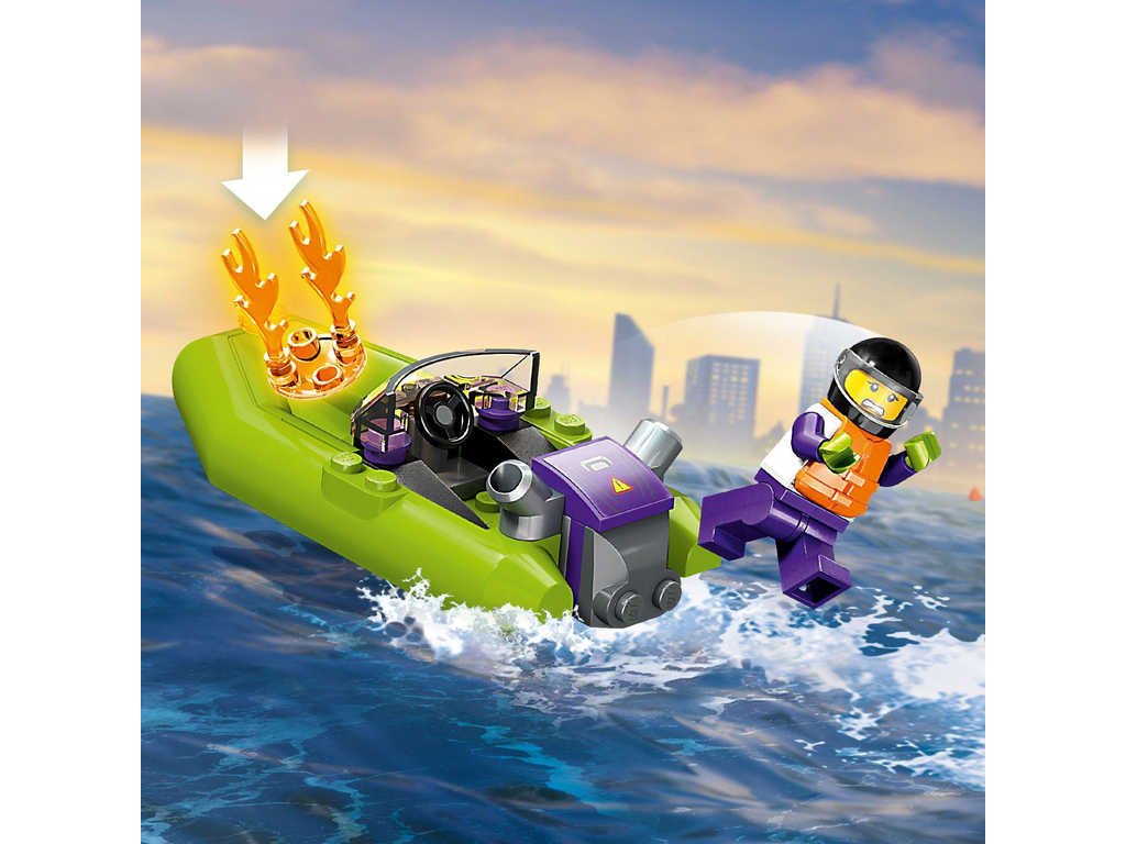 aby uhasil požár. O velkou porci legrace se pak zaručeně postarají 3 minifigurky.