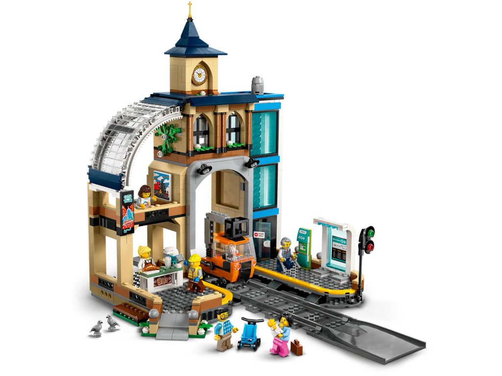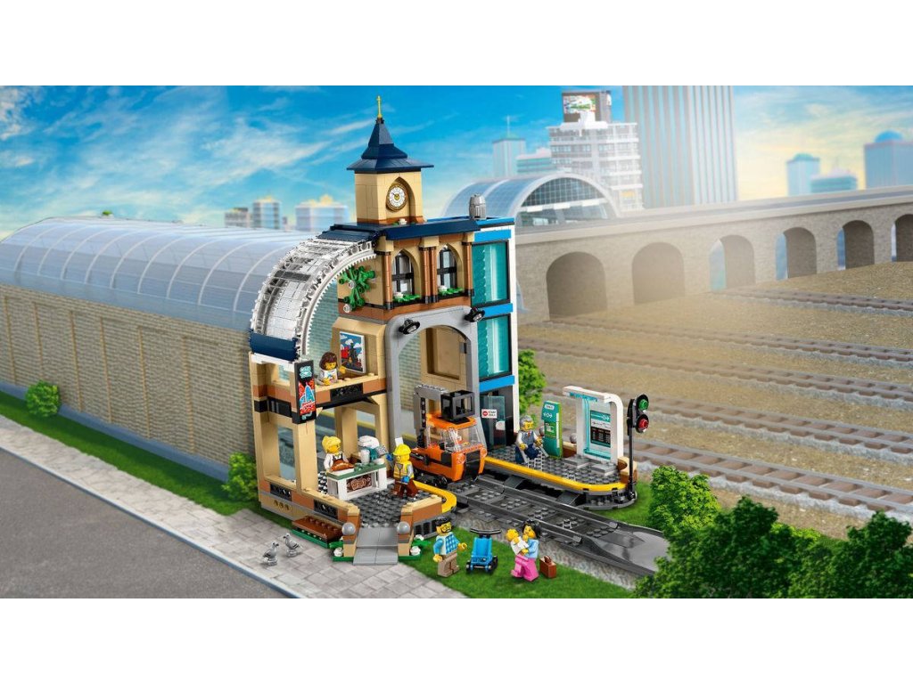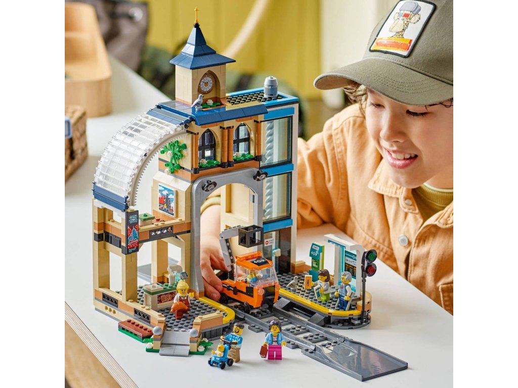 LEGO 60469 - Hlavní vlakové nádraží z produktové řady LEGO CITY - Kvalitní dětská plastová stavebnice v krabici.Stavebnice Hlavní vlakové nádraží pro děti od 7 let má 3 patra a je plná parádních funkcí pro kreativní hraní. V modelu stanice s klasickou hodinovou věží najdete útulnou kavárnu, funkční výtah, řídicí místnost, autobusovou zastávku, 2 nástupiště pro cestující, obrazovku s jízdními řády a automat na jízdenky. Nechybí údržbářský vůz vybavený pracovní plošinou, 6 minifigurek, figurka miminka a 2 figurky holubů na hraní na postavy a vyprávění příběhů. Tento model vlakového nádraží je dodáván s podrobným tištěným návodem na stavění a v aplikaci LEGO Builder najdete digitální návod. V aplikaci si děti můžou přibližovat a otáčet modely ve 3D, ukládat stavebnice a sledovat svůj postup při stavění.