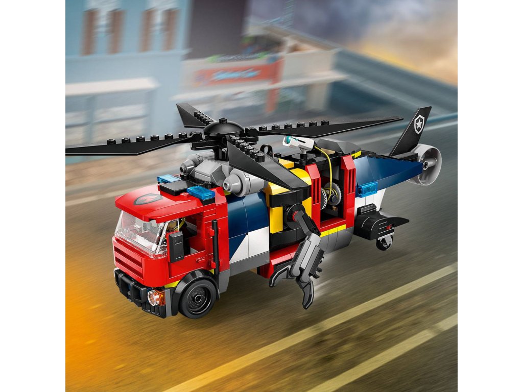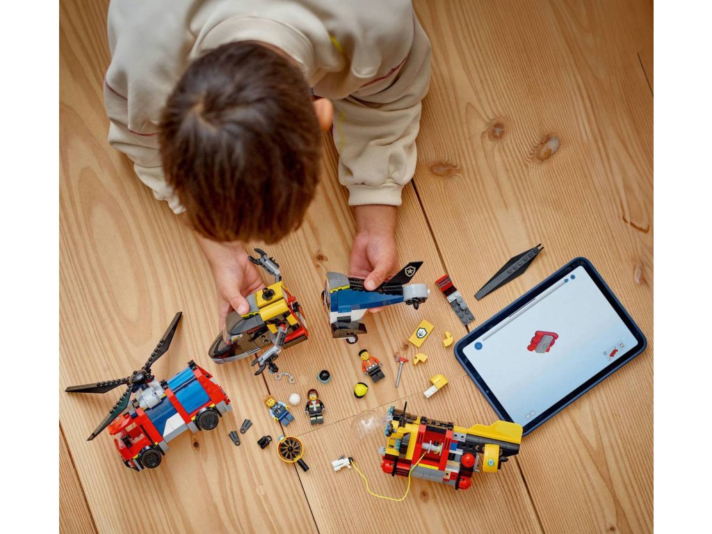 LEGO 60462 - Remix: Helikoptéra, hasičský vůz a ponorka z produktové řady LEGO CITY - Dětská plastová stavebnice v krabici.Děti od 7 let, které rády staví a tvoří, si přímo zamilují stavebnici Remix: Helikoptéra, hasičský vůz a ponorka. Tato stavebnice obsahuje 3 modely včetně policejní helikoptéry s otáčejícím se hlavním rotorem a ocasními rotory, průzkumnou ponorku s kulatým kokpitem a polohovatelnými rameny s drapáky a hasičské auto s výsuvnou hadicí. Každý model se skládá ze 3 modulárních dílů, které děti můžou kombinovat a tvořit tak celou řadu akčních vozidel připravených na napínavé mise. Stačí přidat minifigurku policisty, kormidelníka a hasiče a zábava může začít! Součástí této herní stavebnice LEGO s helikoptérou, hasičským vozem a ponorkou je tištěný návod na stavění a 3D pokyny v aplikaci LEGO Builder, což je digitální průvodce stavěním s intuitivními nástroji přibližování a otáčení. Umožní dětem prohlížet si modely ze všech úhlů, zatímco na nich pracují. Tuto stavebnici můžou děti kombinovat s dalšími z řady LEGO City (prodávají se samostatně) pro ještě více herních možností.