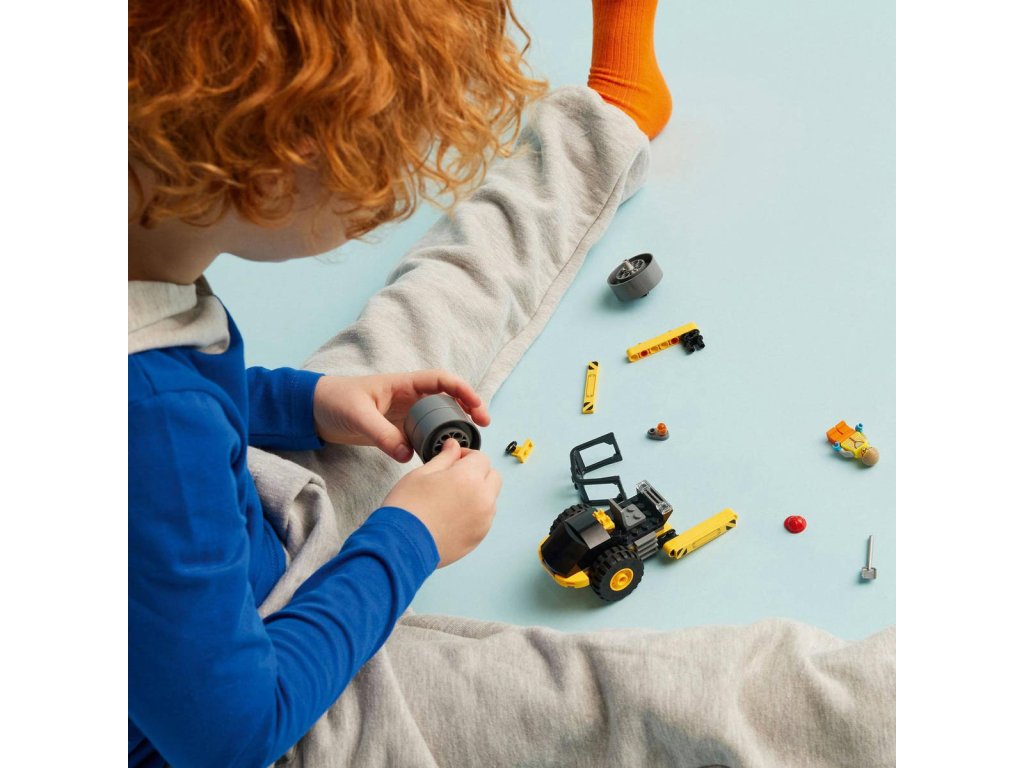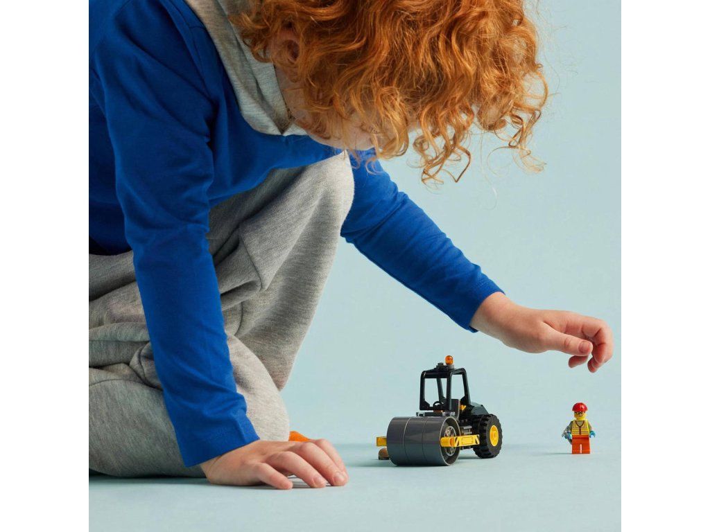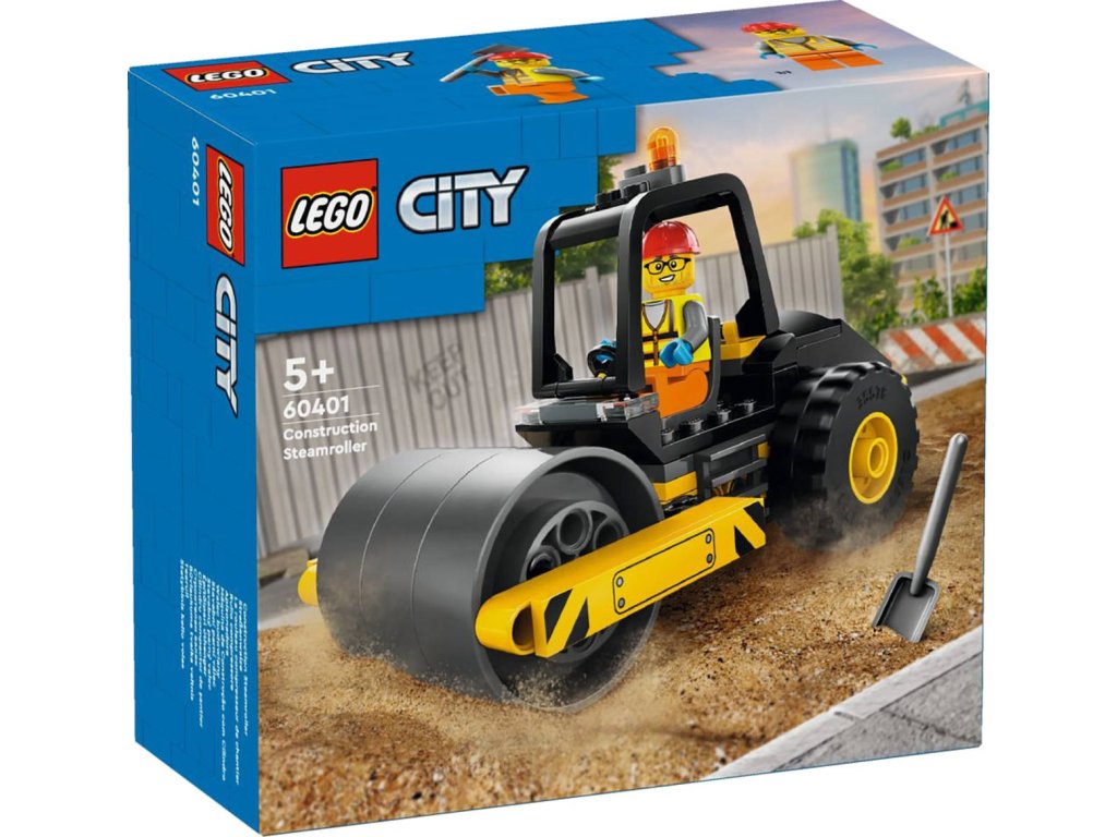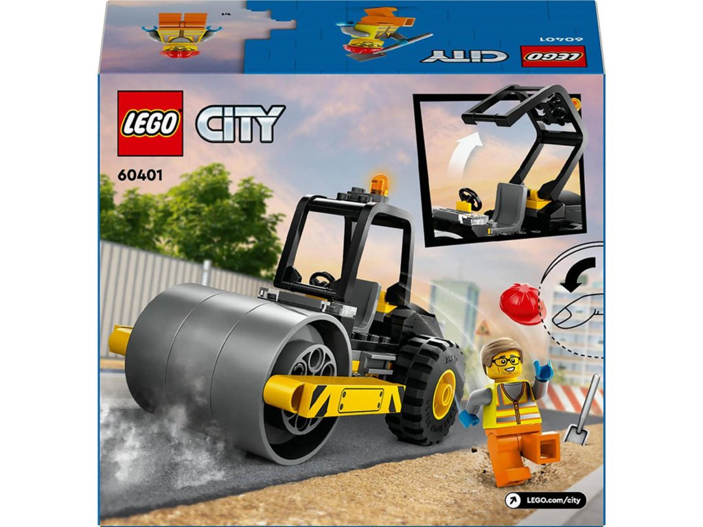 LEGO 60401 - Stavební parní válec z produktové řady LEGO CITY - Dětské plastové kostky v krabici.Představujeme vám ten nejlepší parní válec ve městě! Model Stavební parní válec má robustní pneumatiky a lesklý válec. Představuje perfektní dárek pro fanoušky vozidel na stavbě. Součástí je výstražný maják a kokpit pro minifigurku řidiče – přesně jako ve skutečnosti! Sadu si zamilují malí kreativní stavitelé od 5 let a lze ji kombinovat s podobnými modely z řady LEGO Classic (prodávají se samostatně). Tento model parního válce není jen skvělá hračka – děti si s ní užijí také obohacující stavitelský zážitek. Sada nabízí srozumitelný tištěný návod na stavění a digitální návod v intuitivní aplikaci LEGO Builder. Tento průvodce stavěním obsahuje nástroje přibližování a otáčení modelů ve 3D, aby si děti mohly během stavění prohlížet modely ze všech úhlů.