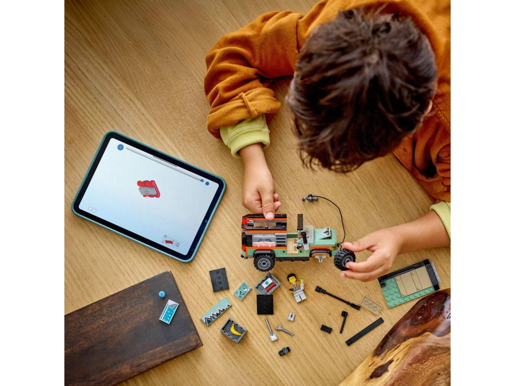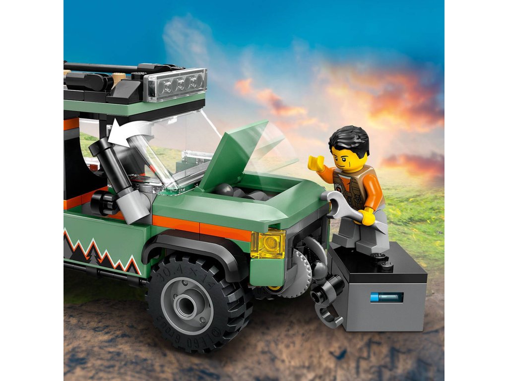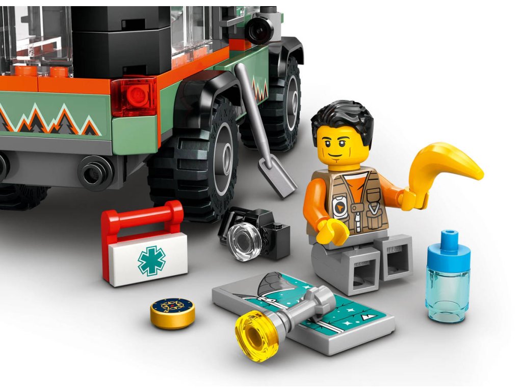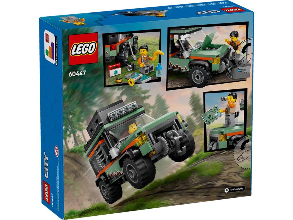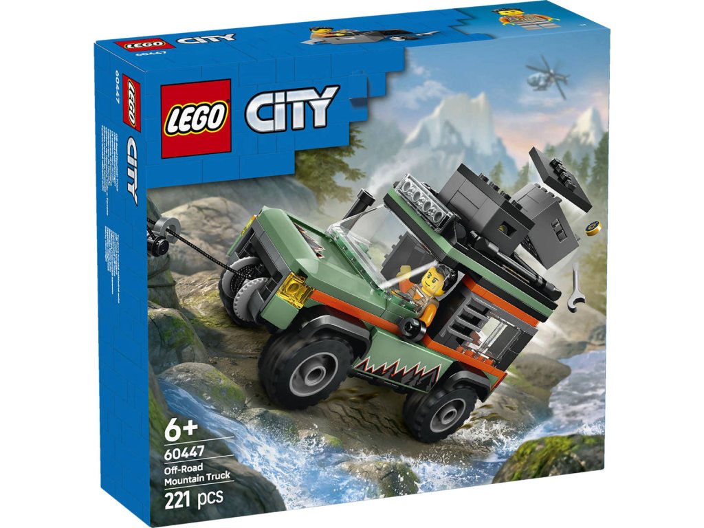 LEGO 60447 - Terénní horské nákladní auto 4x4 z produktové řady LEGO CITY - Dětská plastová stavebnice v krabici.Děti od 6 let se vydají do hor se stavebnicí Terénní horské nákladní auto 4x4. Toto mohutné nákladní vozidlo je nabité skvělými funkcemi a vybavením pro průzkum terénu, včetně střešních úložných boxů, nářadí, odolných pneumatik a funkčního navijáku pro zdolávání strmých svahů. Otočte šnorchl vozidla, zvedněte kapotu a dejte se do opravy motoru! Pak už stačí jen přidat minifigurku dobrodruha a hra může začít! Tento model terénního auta je dodáván s podrobným tištěným návodem na stavění. Digitální návod najdete v aplikaci LEGO Builder, ve které si děti můžou přibližovat a otáčet modely ve 3D, ukládat stavebnice a sledovat svůj postup při stavění.