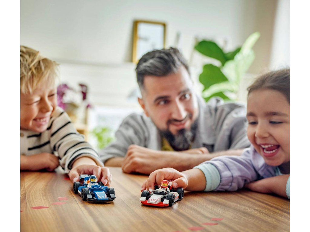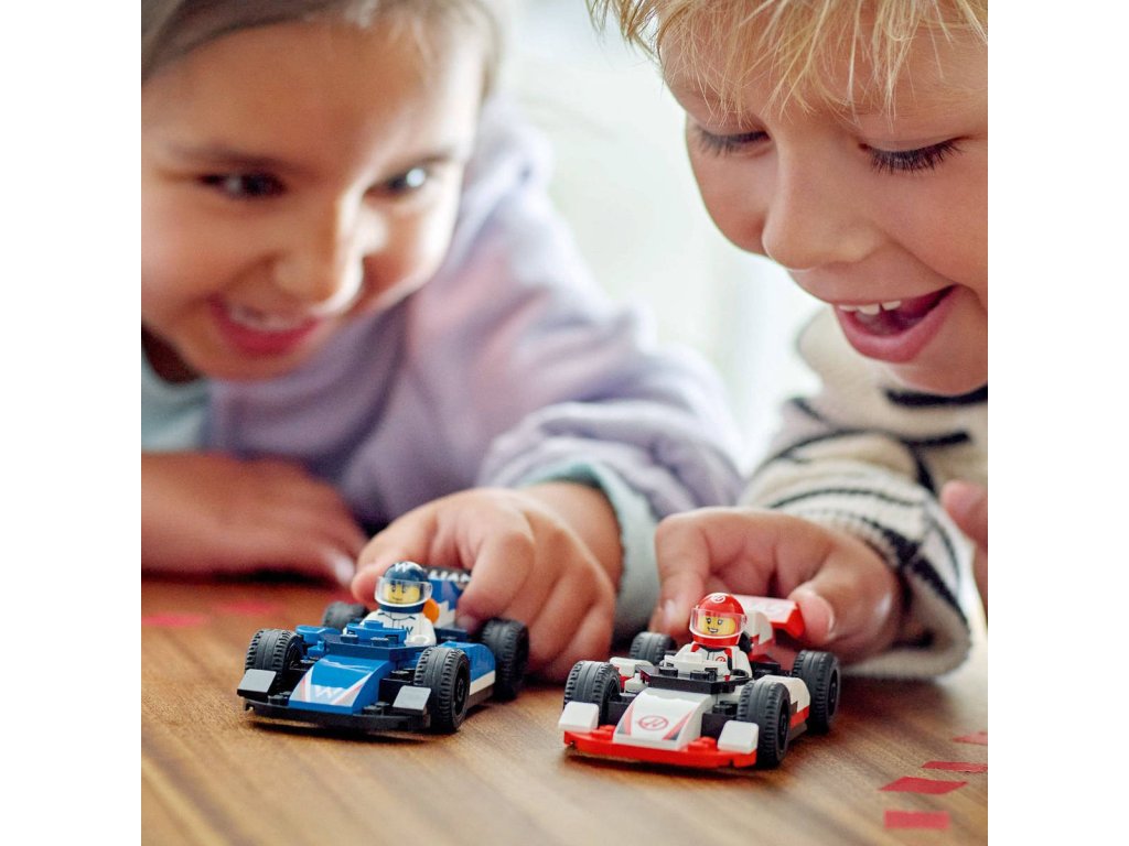 LEGO 60464 - Závodní vozy F1 Williams Racing a Haas F1 z produktové řady LEGO CITY - Dětská plastová stavebnice v krabici.Potěšte malé milovníky závodění od 4 let stavebnicí Závodní vozy F1 Williams Racing a Haas F1. Tato stavebnice LEGO F1 je ideální pro malé milovníky závodění a obsahuje 2 realistické modely závodních aut Formule 1 s hladkými pneumatikami. Stačí přidat minifigurky řidičů vozů Williams a Haas a zábavné závody můžou začít. Objevte celou dynamickou řadu stavebnic LEGO F1 pro děti i dospělé. Součástí této snadno sestavitelné stavebnice vozidla F1 z kostek LEGO je začátečnická kostka LEGO, obrázkové pokyny a 3D návod v doprovodné aplikaci LEGO Builder, která obsahuje nástroje přibližování a otáčení, aby si děti mohly během stavění prohlížet modely ze všech úhlů.