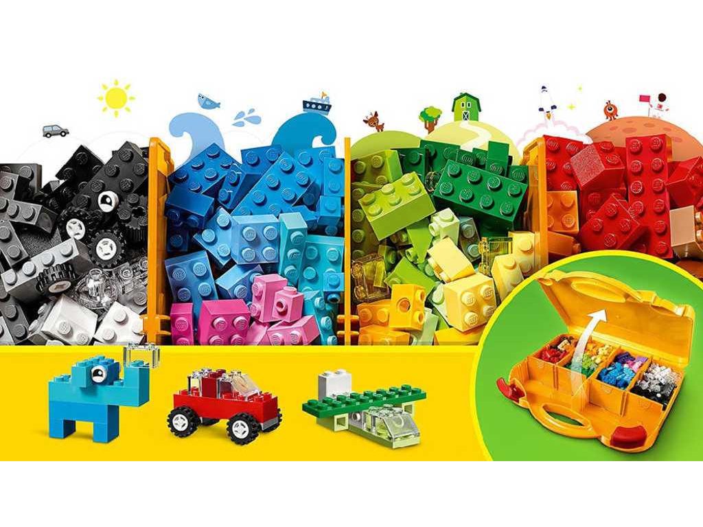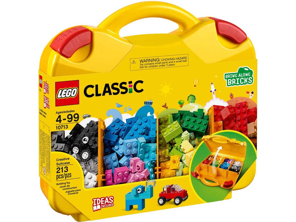 LEGO 10713 - Kreativní kufřík z produktové řady LEGO CLASSIC. Dětské plastové kostky v kufříku z plastu.Měj ve svých LEGO kostkách pořádek s tímto elegantním a odolným Kreativním kufříkem od LEGO Classic. Měj všechny pestrobarevné kostky po ruce v tomto žlutém kufříku a vytvářej roztomilá stvoření, skvělá auta, útulné domečky a cokoliv dalšího, co tě jen napadne. Až budeš mít hotovo, ukliď kostky do jednotlivých přihrádek, tam kde patří, a mužeš vyrazit!