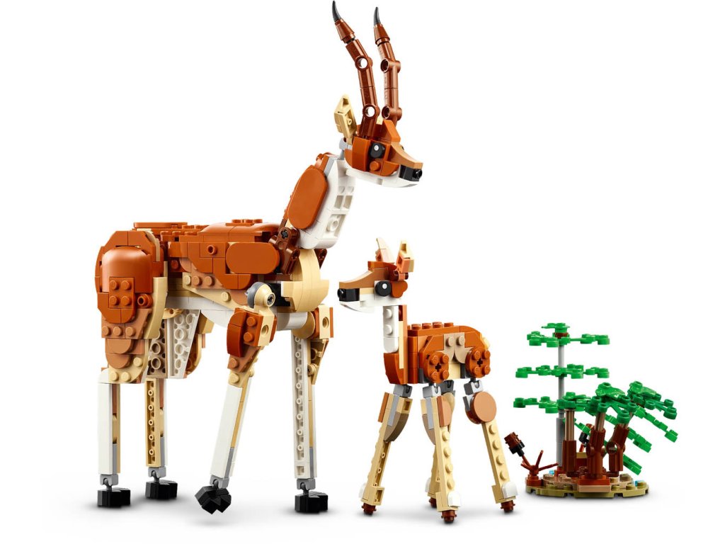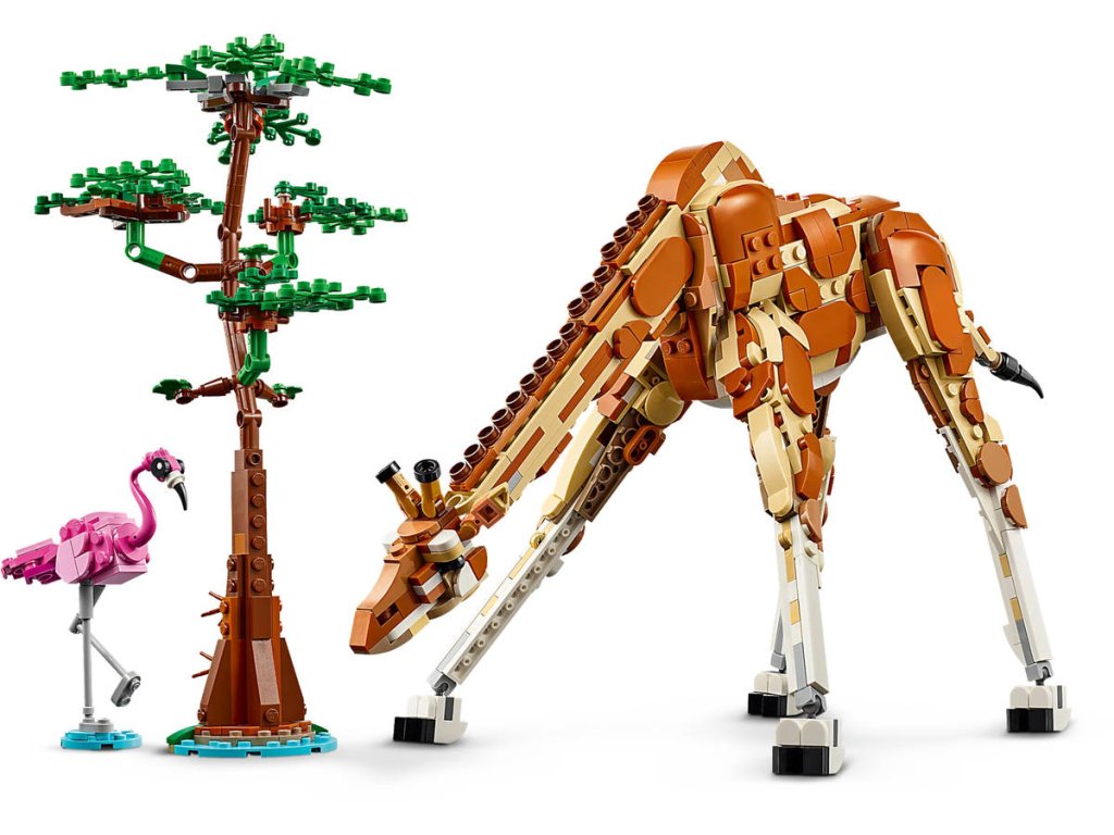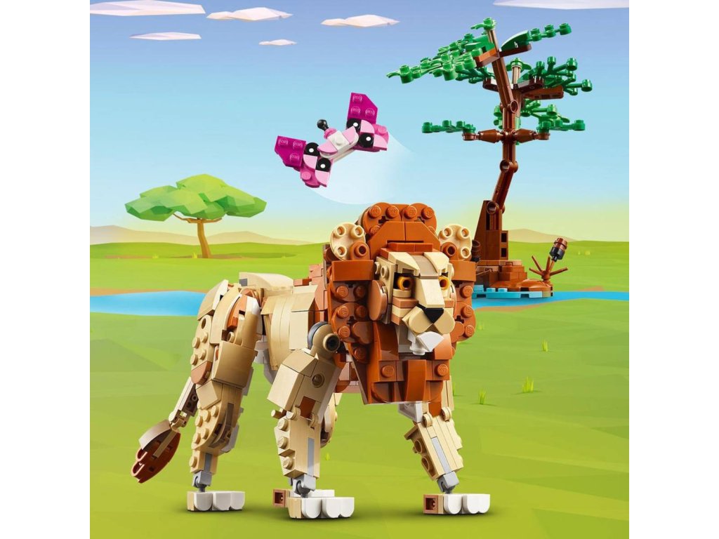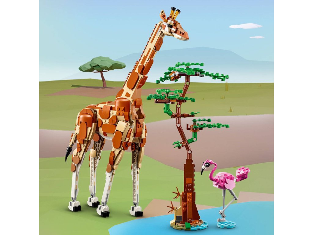 LEGO 31150: Divoká safari zvířátka z produktové řady LEGO CREATOR - Dětské plastové kostky v krabici. 3 v 1.Děti od 9 let se se stavebnicí Divoká zvířata ze safari budou cítit jako mezi skutečnými zvířaty. Užijí si nápadité hraní s modely zvířat, včetně žirafy s pohyblivýma nohama, dlouhým krkem, ocasem a ušima, která se tyčívedle modelu stromu a plameňáka. Jakmile herní dobrodružství skončí, děti si mohou všechny 3 modely vystavit. ato stavebnice LEGO dětem přináší svět nekonečných herních možností. Ze stejné sady kostek si postaví hned 3 různá zvířata: Pohyblivou žirafu se stromem a plameňákem, kterou pak přestaví na 2 pohyblivé modely gazel – dospělou gazelu s mládětem – se 2 keři nebo model přeskládají na lva se stromem a motýlem.