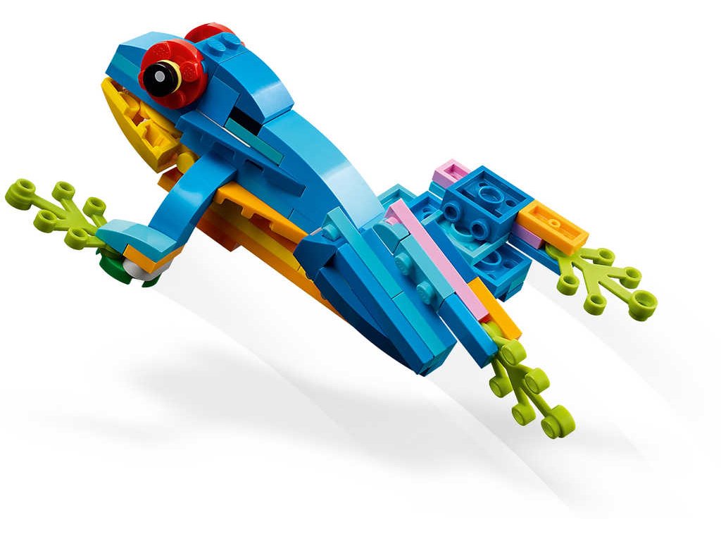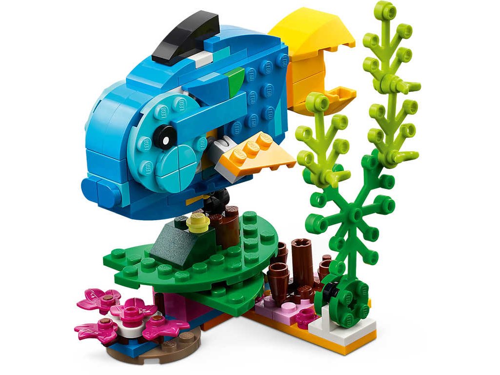 LEGO 31136 - Exotický papoušek z produktové řady LEGO CREATOR - Dětské plastové kostky v krabici (3in1).Se stavebnicí Exotický papoušek se malí stavitelé a milovníci zvířat od 7 let vypraví do pralesa, kde zažijí akční dobrodružství. Mohou se těšit na pestrobarevného papouška, který sedí na větvi, kde se otáčí a hýbe křídly a ocasem. S touto stavebnicí LEGO 3 v 1 budou mít děti příležitost postavit si 3 různá exotická zvířata. Mohou si poskládat barevného papouška na větvi stromu a přestavět ho na hravou rybu plavající v moři nebo na zábavnou žábu, která umí hýbat nohama. Stáhněte si aplikaci s návody LEGO Builder, která dětem umožní vychutnat si zcela novou porci zábavy při stavění díky funkcím přibližování a otáčení modelů ve 3D, ukládání stavebnic a sledování postupu.