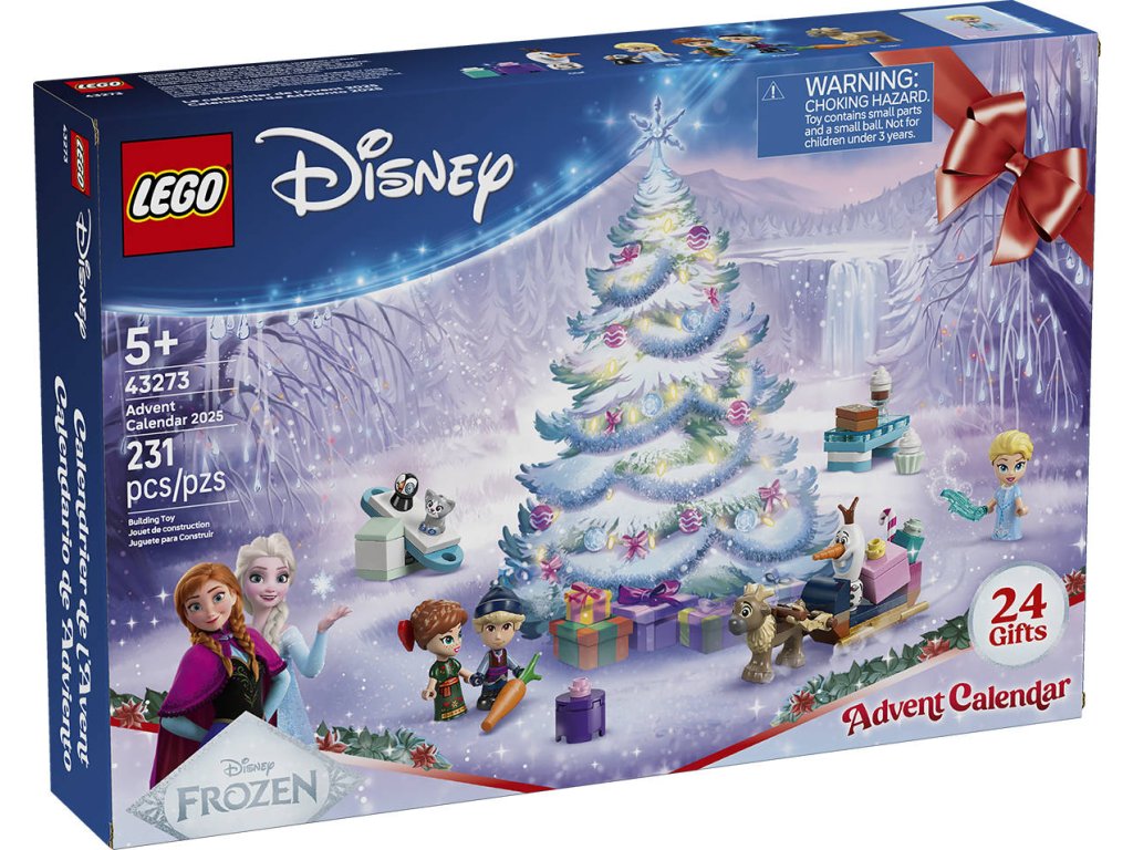 LEGO DISNEY Frozen Adventní kalendář pro rok 2025, s rozkládací s herní plochou.Začněte odpočítávat dny do Vánoc s napínavým Adventním kalendářem 2025 na motivy filmu Ledové království od studia Disney pro děti od 5 let. Stavebnice je plná sestavitelných hraček, včetně mikropanenek Elsy, Anny a Kristoffa, postaviček Olafa a Svena a 2 koťat. Za každým okénkem se skrývá postavička nebo miniaturní model, který vašim dnům dodá dávku kouzelné vánoční atmosféry.