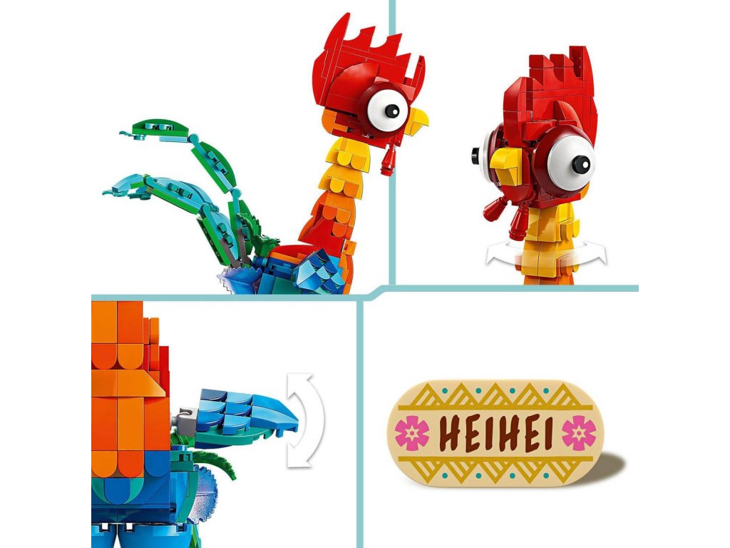 LEGO 43272 - Odvážná Vaiana 2: Kohoutek Heihei z produktové řady LEGO DISNEY - Kvalitní dětská plastová stavebnice v krabici.Přineste si domů kousek fantasy světa z Disney filmu Odvážná Vaiana 2. Milovníci zvířat, filmů a děti od 9 let si užijí stavění pestrobarevného kohoutího společníka Heihei s pohyblivou hlavou, křídly a ocasními pery, kterého pak postaví na nohy nebo na podstavec s ozdobnými květinami a cedulkou. Tato Disney stavebnice pro holky, kluky a fanoušky představuje skvělou sestavitelnou fantasy hračku, o které budou všichni mluvit. Model nabízí starším dětem a dospělým fanouškům Disney složitější stavitelský zážitek a skvěle poslouží jako dárek. Model si můžete vystavit nebo ho kombinovat s dalšími stavebnicemi LEGO | Disney (prodávají se samostatně). Stavitele také čeká intuitivní stavitelský zážitek s aplikací LEGO Builder, ve které můžou přibližovat a otáčet modely ve 3D, ukládat stavebnice a sledovat průběh stavění.