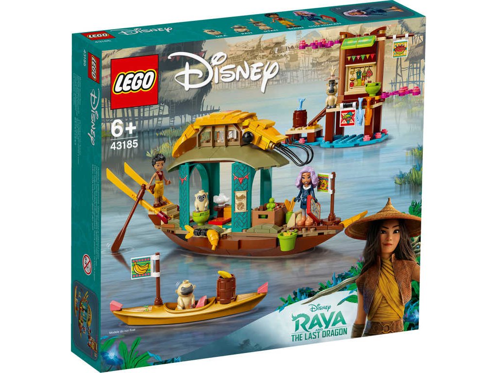 LEGO DISNEY Raya a poslední drak 43185Stavebnice Boun a loď (43185) od LEGO Disney potěší všechny fanoušky filmového trháku Raya a drak. Tato skvělá sada obsahuje velkou loď a dva menší modely, které poslouží jako inspirace ke hraní.