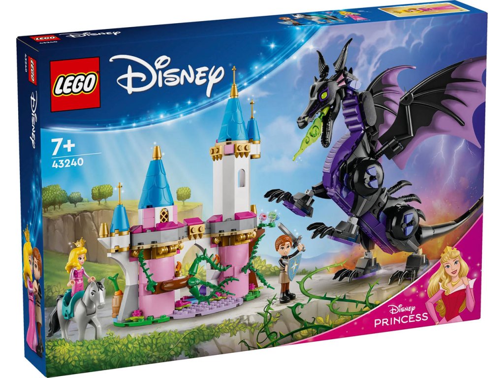 LEGO 43240 - Šípková Růženka: Zloba v dračí podobě z produktové řady LEGO DISNEY PRINCESS - Dětské plastové kostky v krabici.Děti a fanoušci filmu Šípková Růženka z dílny studia Disney od 7 let se vydají na velkolepá dobrodružství se stavebnicí Zloba v dračí podobě. Stavebnice představuje zábavný tip na dárek ze světa Disney a součástí je část mostu s věžemi, prostorem pro postel, otáčecím kolovrátkem a další řada inspirativních prvků. Nechybí minipanenka LEGO | Disney Šípkové Růženky a prince Filipa, figurka LEGO | Disney koně Samsona a polohovatelná figurka LEGO | Disney draka s pohyblivou hlavou, nohama, ocasem a skládacími křídly. Tato stavebnice je určená pro děti od 7 let a pomůže malým stavitelům rozvíjet sebevědomí při vymýšlení nových příběhů. Model se hodí i pro hraní u kamarádů a lze ho kombinovat s dalšími stavebnicemi LEGO pro děti a stavebnicemi z řady LEGO | Disney (prodávají se samostatně). Děti si také užijí snadný a intuitivní stavitelský zážitek s aplikací LEGO Builder, která jim umožní přibližovat a otáčet modely ve 3D, ukládat stavebnice a sledovat postup.
