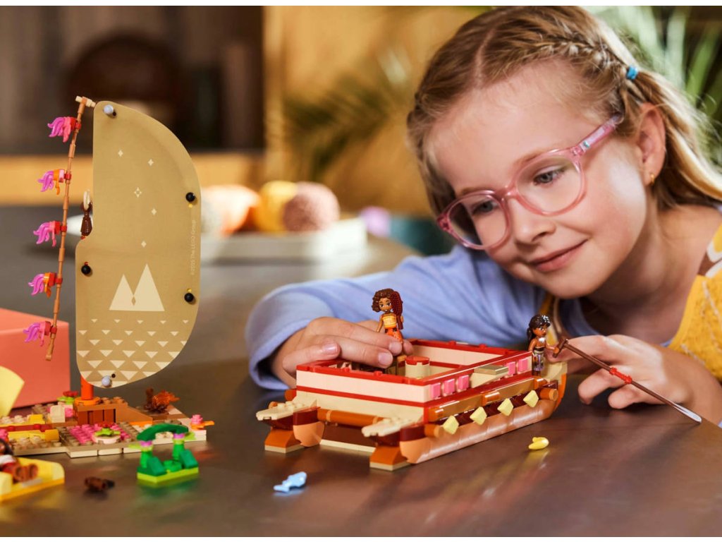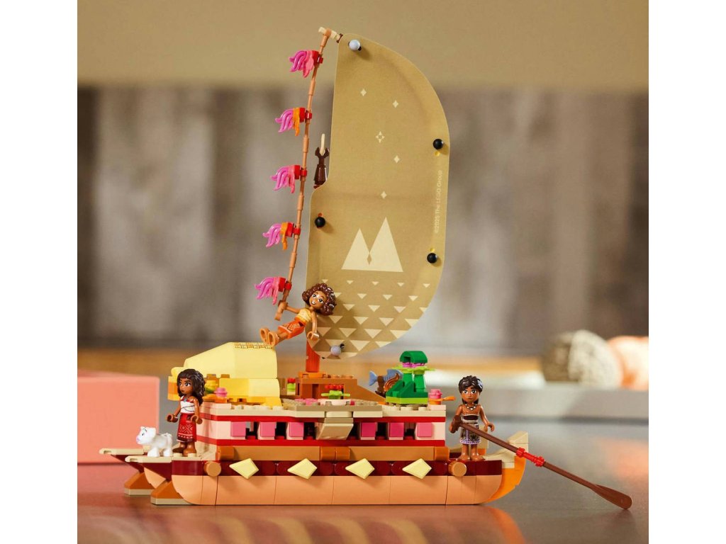 LEGO 43270 - Vaiana a dobrodružství na kánoi z produktové řady LEGO DISNEY. Dětská plastová stavebnice v krabici.Potěšte mladé vypravěče od 6 let zábavnou stavebnicí Vaiana a dobrodružství na kánoi. Tato fantastická stavebnice obsahuje kánoi s dvojitým trupem, potištěnou textilní plachtou a lanem lei hulu, které pomáhá určit, odkud vane vítr. Nechybí také odnímatelná horní paluba s obytným prostorem, malý táborák a spací prostory na palubě. Součástí je také spousta inspirativních prvků, minipanenky LEGO | Disney – Vaiana, stavitelka lodí Loto a veslař Moni (který rád vypráví příběhy) a figurka LEGO | Disney prasátka Puy.