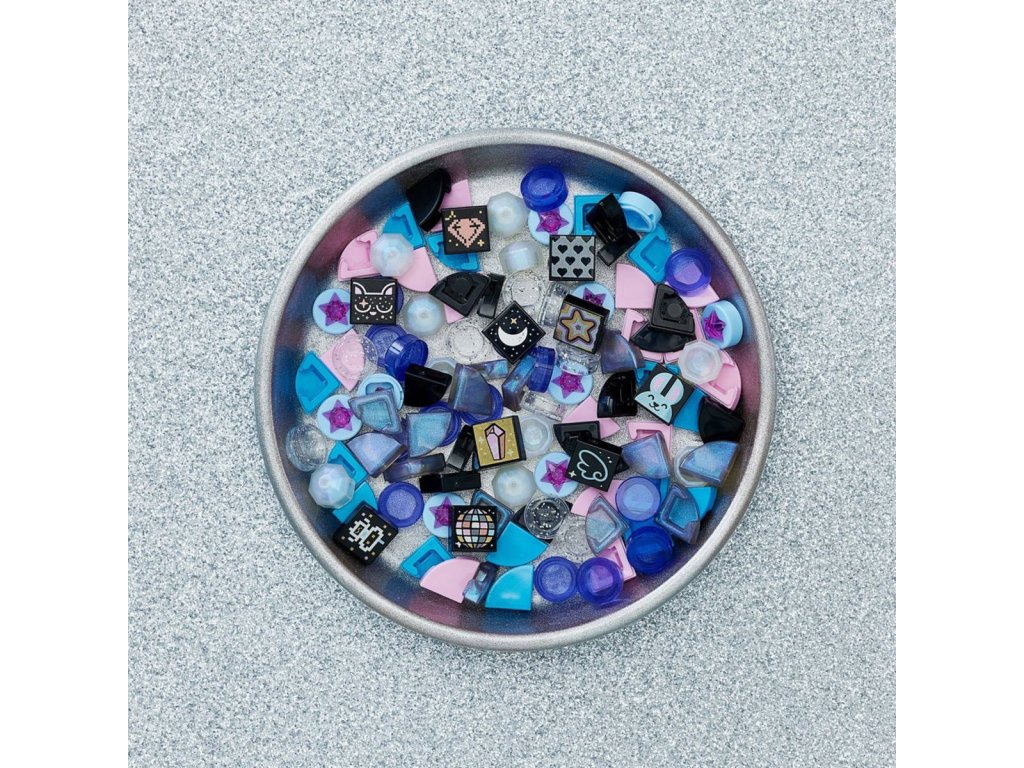 LEGO 41803 - Třpytky - doplňky ke stavebnicím z produktové řady LEGO DOTS v sáčku.Tvůrčí děti od 6 let a milovníci umění a designu si tuto stavebnici doslova zamilují! Lze ji kombinovat se všemi ostatními modely LEGO DOTS tak, aby tyto extra dílky dětem umožnily vytvářet přizpůsobitelné návrhy a měnit je podle nálady, stylu nebo výzdoby pokoje. Uvnitř sáčku se ukrývá 105 barevných dílků, včetně barevných, duhových, třpytivých zdobítek a také zdobítek s 3D efektem hvězdy. Dále nechybí 10 z 16 dílků s grafickým potiskem, které pokrývají různé zájmy, jako je hudba, láska, zvířata a vesmír.