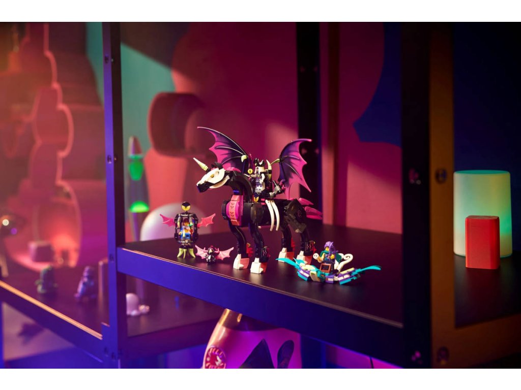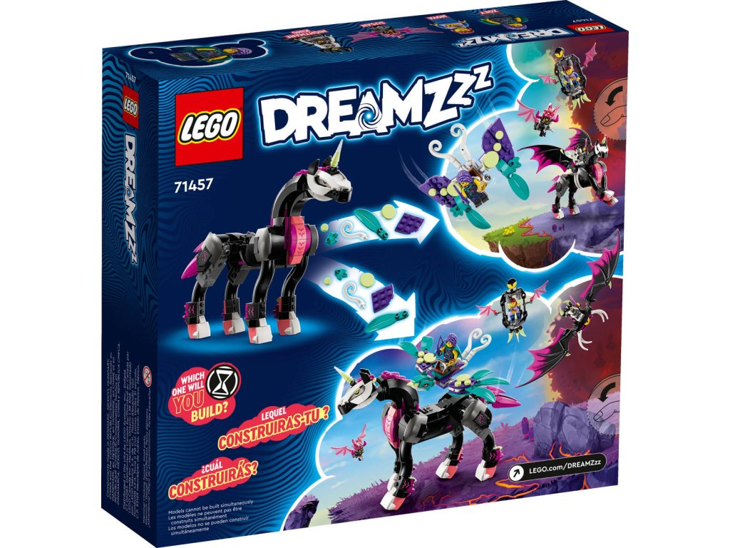 LEGO 71457: Létající kůň pegas z produktové řady LEGO DREAMZZZ - Dětské plastové kostky v krabici.Stavebnice Létající kůň pegas vtáhne děti od 8 let přímo do akce ve Světě snů. Podobně jako v televizním seriálu se tu odehrává příběh Zoey a její záchranné mise za kamarádkou Novou, kterou unesla noční můra Susan na létajícím koni pegasovi. Návod na stavění vedený příběhem vtáhne děti do akce a podnítí jejich představivost při rozhodování o tom, co Zoey podnikne. Zoey potřebuje při záchraně Novy pomoc dětí, které jí postaví buď figurku ptáčka, nebo jí dají křídla, aby mohla pronásledovat noční můry. Tyto 2 varianty ke stavění rozvíjejí kreativitu a představivost a dopřejí dětem dvojnásobnou zábavu při hraní. Létající kůň pegas má pohyblivou hlavu, boky, kopyta a ocas, takže ho děti při hraní snadno nastaví do různých poloh. Na jeho záda můžete připojit podrobně zpracovaný trůn Krále nočních můr a Zoeyina ptáčka.