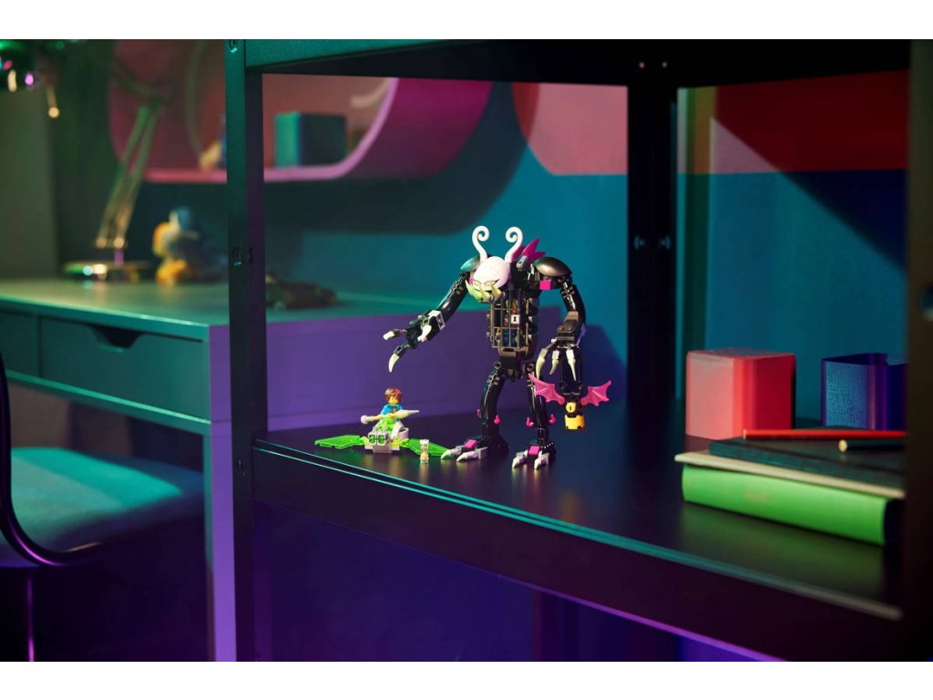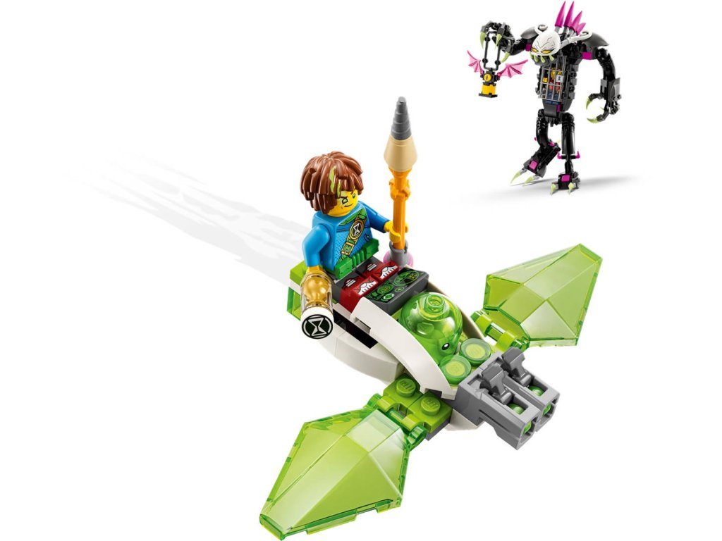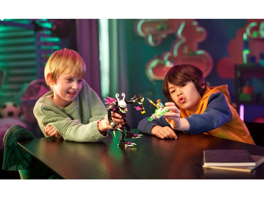 LEGO 71455: Temný strážce klecí z produktové řady LEGO DREAMZZZ - Dětské plastové kostky v krabici.Děti od 7 let se ve stavebnici Šklebostráž utkají s děsivou noční můrou. Nejdříve děti sestaví zákeřného Šklebostráže. Poté, podobně jako v akčním příběhu z televizního seriálu DREAMZzz, pomohou Mateovi a Z-Flekovi zachránit kamaráda Coopera ze zlých spárů Šklebostráže, který je se svou kořistí na cestě za Králem nočních můr. K záchraně Coopera ze spárů Šklebostráže si děti mohou vybrat mezi 2 možnostmi stavění. Buď Z-Fleka postaví jako mini letadlo a zaútočí na Šklebostráže přímo, nebo z něj udělají vznášející se motorku, na které ve vhodnou chvíli dohoní a zastaví Šklebostráže a zachrání Coopera. Dejte dětem na výběr a dopřejte jim dvojnásobnou porci hraní. Akční hraní podpoří minifigurky Matea a Coopera. K jejich doplňkům patří pásek, tužkové kopí a přesýpací hodiny, které jsou pro tyto postavy v televizním seriálu důležité.