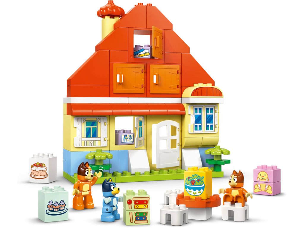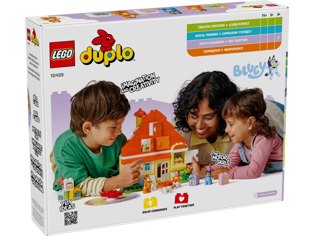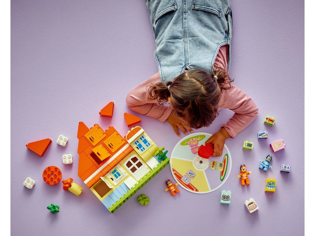 LEGO 10459 - Dům Bluey a paměťová hra z produktové řady LEGO DUPLO - Kvalitní dětská plastová stavebnice v krabici.Představte batolatům zábavnou stavebnici, se kterou je čeká dvojnásobná porce zábavy! Dům Blueya paměťová hra přináší hned 2 zábavné aktivity v jedné barevné stavebnici. Tato interaktivní hračka je plná herních možností. Děti od 3 let si můžou s tuto dobrodružnou hračkou hrát na postavy díky 3 figurkám – Bluey, Bingo a máma Chilli – a spoustě doplňků z televizního seriálu Bluey. Nebo si se svou rodinou zahrají zábavnou paměťovou hru! Rodiče schovají kostky a figurky Bluey za okna domua děti pak roztočí kolo, aby zjistily, které dílky mají najít. Při otevírání oken rozvíjejí jemné motorické dovednosti a schopnost porovnávání, přiřazování a komunikace, aby zjistily, jestli našly správný dílek. Pak zapojí paměť a zkusí si zapamatovat, kde se skrývají ostatní předměty, kterým hledají pár. Stavebnice obsahuje 83 dílků.