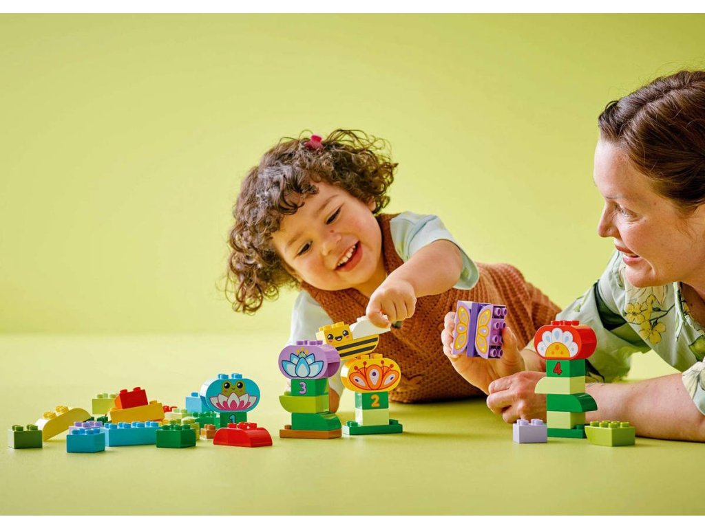 LEGO 10444 - Kreativní zahrada a květiny z produktové řady LEGO DUPLO - Dětská plastová stavebnice v krabici.Pomozte své ratolesti rozvíjet kreativitu a jemné motorické dovednosti se stavebnicí LEGO DUPLO Město Kreativní zahrada a květiny. Tato stavebnice obsahuje 45 kostek na sestavení barevných květin, roztomilých zvířátek a hmyzu LEGO DUPLO a inspiruje kreativní děti k sestavení neustále se měnící krásy z kostek. Tato vzdělávací hračka podněcuje představivost malých dětí a umožní jim postavit si vlastní verzi světa, který každý den vidí kolem sebe. Děti ze 45 kostek poskládají zahradu a naučí se rozpoznávat čísla, procvičí rozpoznávání barev a začnou zdokonalovat svou řeč a jemné motorické schopnosti. Rozvinou také svou vytrvalost při skládání kostek na sebe, aby vytvořily zvířátka a květiny. Hledáte ten nejlepší dárek pro svou ratolest? Tato kreativní hračka obsahuje spoustu kostek, se kterými si malé děti poskládají zahradu podle svých představ, umístí figurky motýla, včely a žáby, kamkoli chtějí, a navíc zdokonalí své dovednosti!