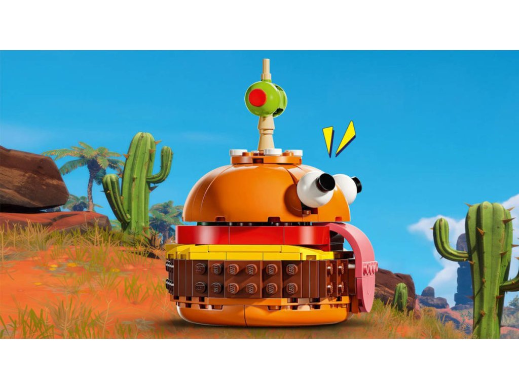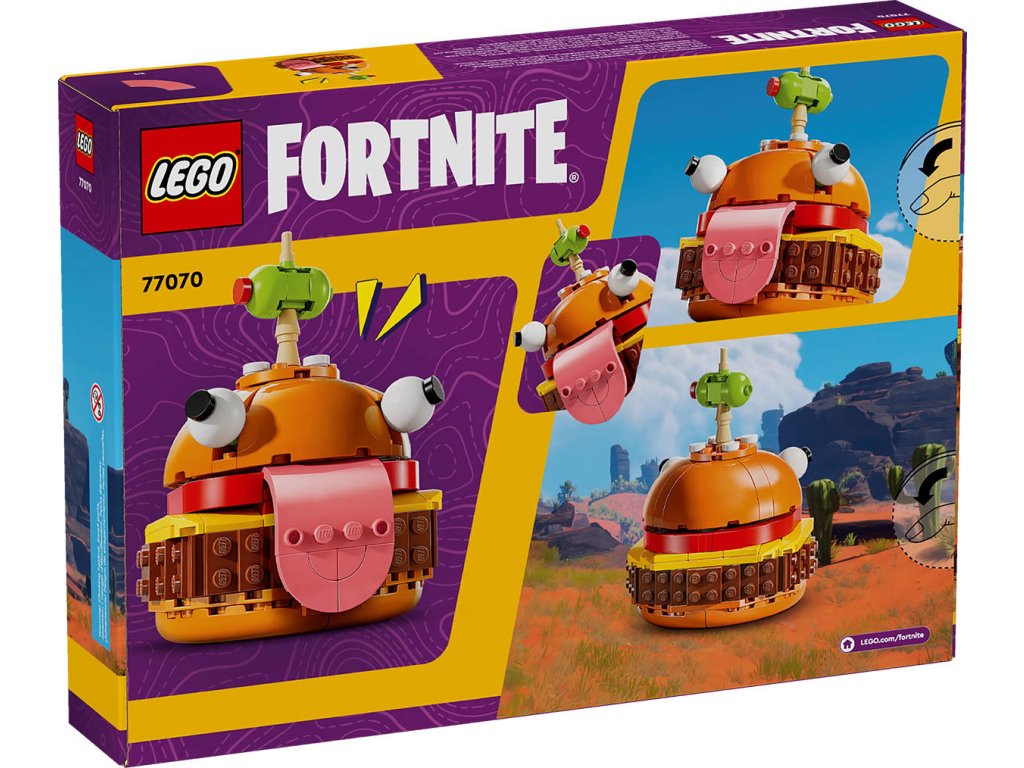 LEGO 77070 - Durrr Burger z produktové řady LEGO FORTNITE - Dětská plastová stavebnice v krabici.Zažehněte jiskru své kreativity s úžasnou videoherní stavebnicí Durrr Burger pro gamery od 9 let. Stavebnice je inspirovaná videohrou LEGO Fortnite a fanoušci si s ní vytvoří výstavní model Durrr Burger, ikonického maskota restaurace ze světa Fortnite. Malí gameři si při stavění modelu užijí spoustu zábavy a prozkoumají jeho úchvatné detaily, včetně typických očí, jazyka a olivy na párátku. Po sestavení se z videoherního modelu stane parádní sběratelská hračka, kterou si děti mohou hrdě vystavit v pokojíčku nebo v herně. Model představuje skvělý dárek pro děti, které milují videohry, a fanoušky Fortnite všech věkových kategorií. Ať už tuto dekoraci z kostek LEGO umístíte kamkoli, vykouzlí vám úsměv na tváři.