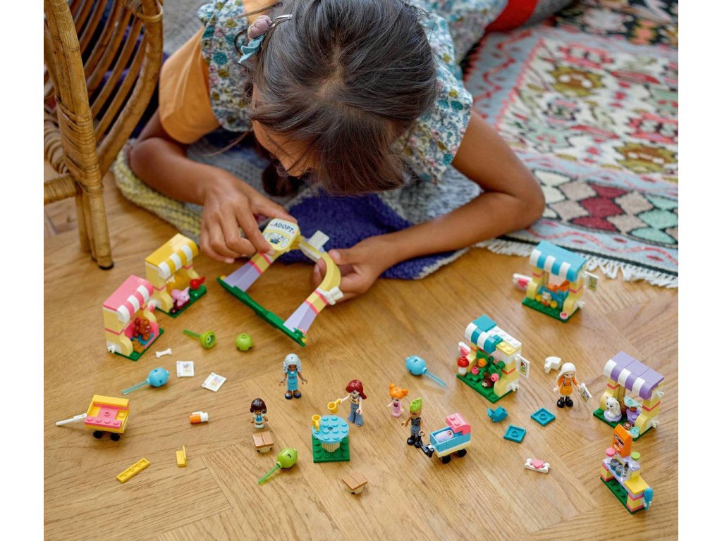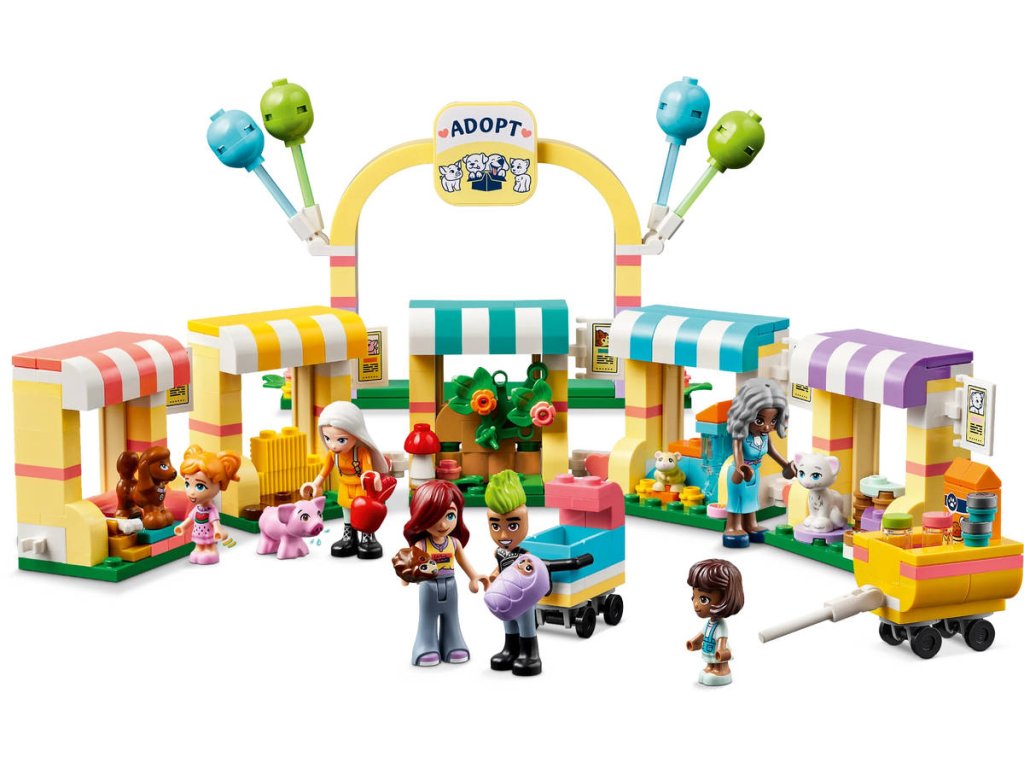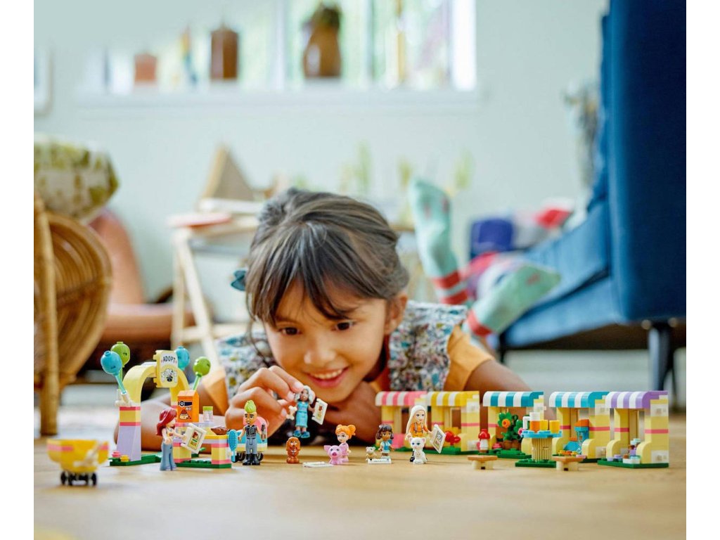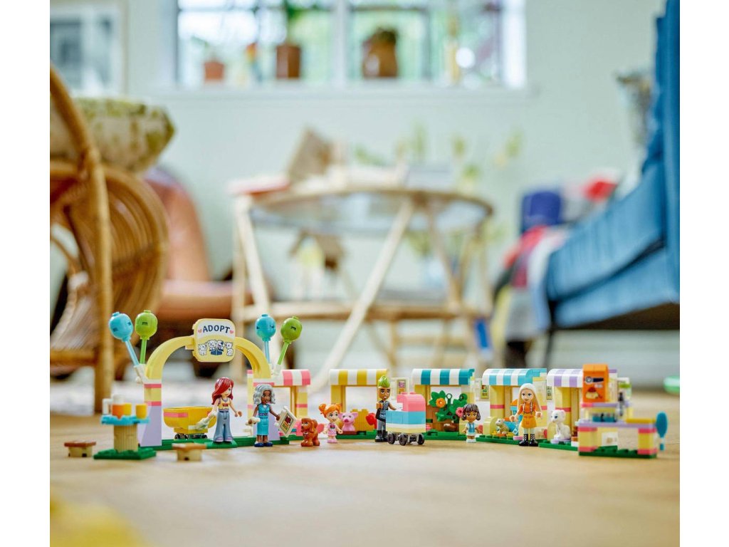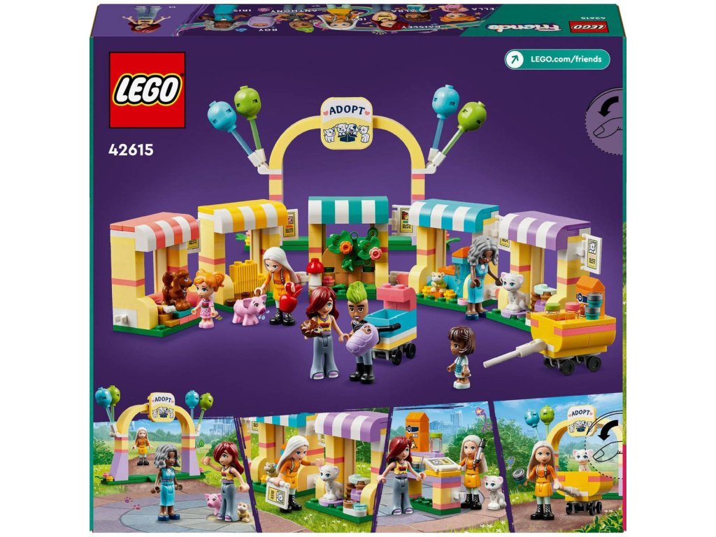 LEGO 42615 - Den adopce mazlíčků z produktové řady LEGO FRIENDS - Kvalitní dětská plastová stavebnice.Děti od 6 let, které mají rády hračky s domácími mazlíčky, si se stavebnicí Den adopce mazlíčků užijí hodiny zábavy. Součástí sady jsou 4 minipanenky, 2 mikropanenky, figurka miminka, 5 figurek zvířat a spousta doplňků. Tato stavebnice pomáhá rozvíjet sociální a emoční dovednosti a inspiruje děti k péči o zvířata. Společně s Paisley najdou nové majitele figurce prasátka, kočky, křečka, ježka a pejska, kteří mají vlastní přístřešek. Nechybí ani místo na piknik, kde si zvířátka odpočinou se svou novou lidskou rodinou, a obchůdek s krmivem. Když je čas vyrazit do nových domovů, Paisley zvířátka přemístí do přívěsu. Součástí je řada doplňků, včetně kartáče, jablka, pera, misky na krmivo, houby, hrníčků a dokumentů k adopci.