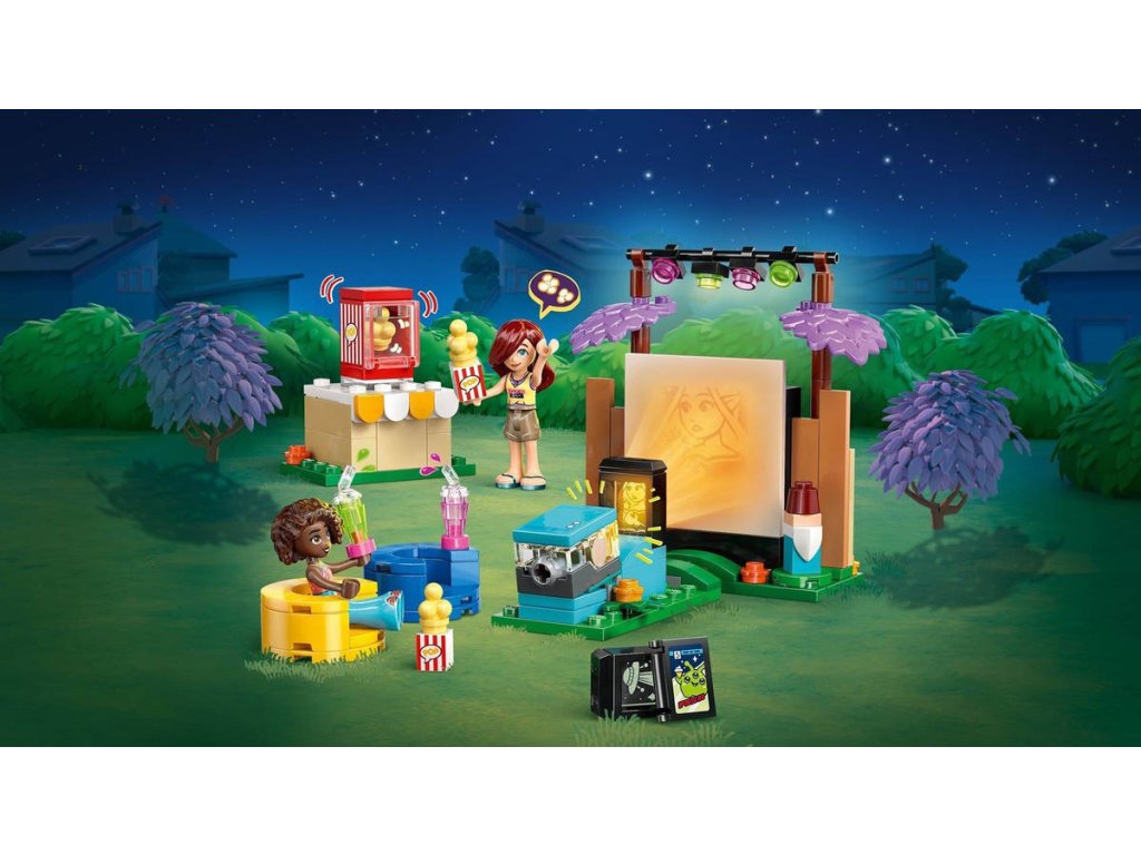 LEGO 42642 - Filmový večer s kamarády z produktové řady LEGO FRIENDS - Kvalitní dětská plastová stavebnice v krabici.S tímto dárkem pro děti si užijete spoustu kouzelných filmových nocí! Holky, kluci a milovníci filmů od 6 let si vymyslí vlastní senzační příběhy se stavebnicí Filmový večer s kamarády. Zábavná stavebnice obsahuje 2 minipanenky LEGO Friends a spoustu doplňků pro kreativní hraní. Světla, kamera, přátelství! Děti si vymyslí příběhy o kamarádkách Paisley a Aliyi, které si užívají filmový večer na Paisleyině zahradě. Zasuňte film do projektoru a stisknutím světelné kostky rozsviťte obraz na velké obrazovce. Objevte spoustu příslušenství, včetně stroje na popcorn s páčkou, díky které bude popcorn „pukat“! Mezi další doplňky patří krabička na popcorn, nápoje, komiks a 2 pohodlné sedací vaky.
