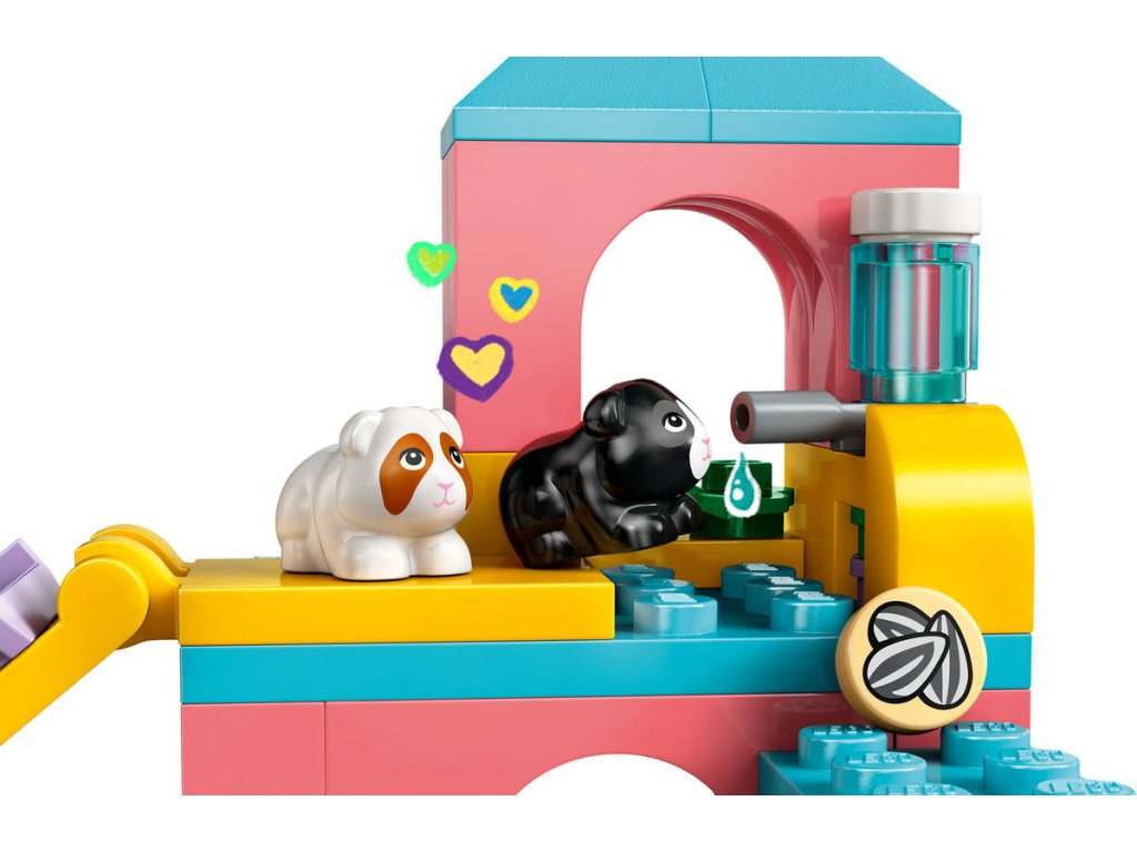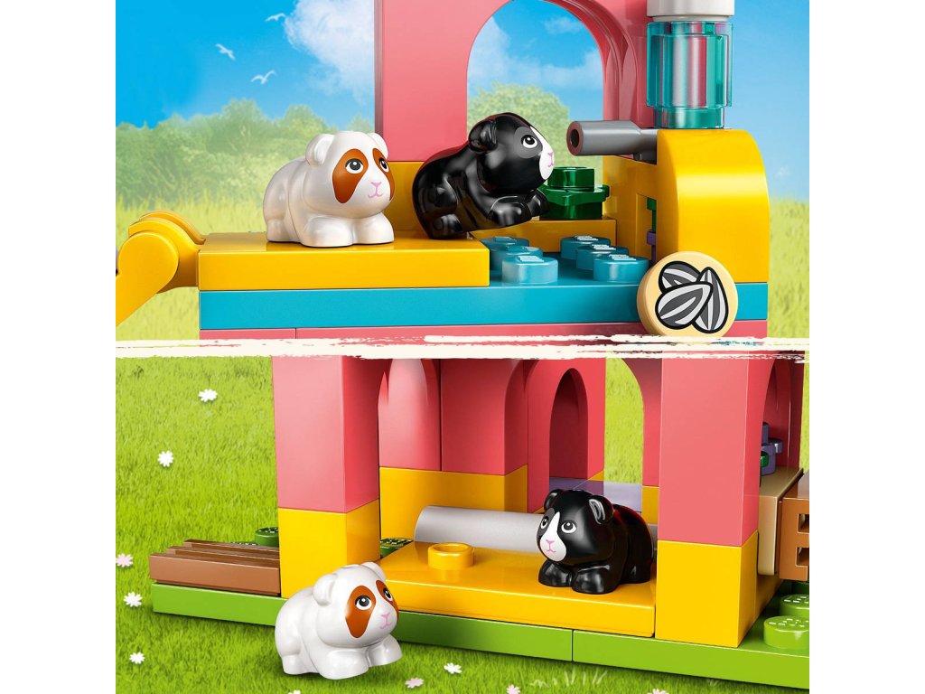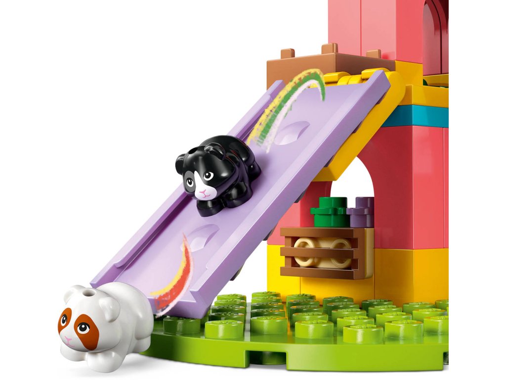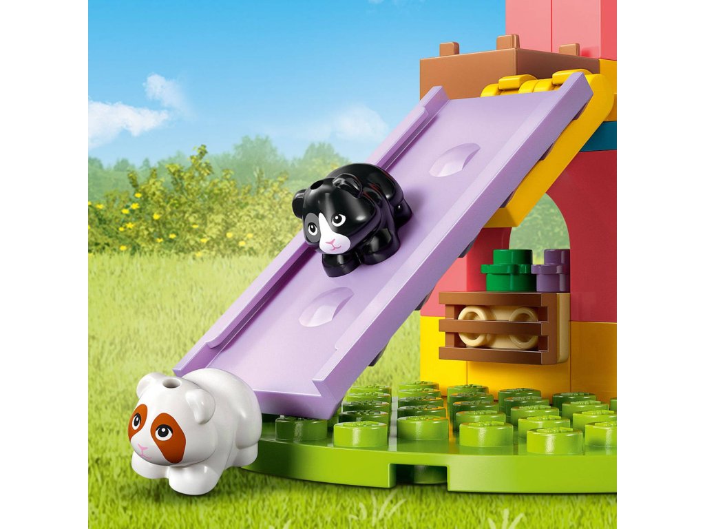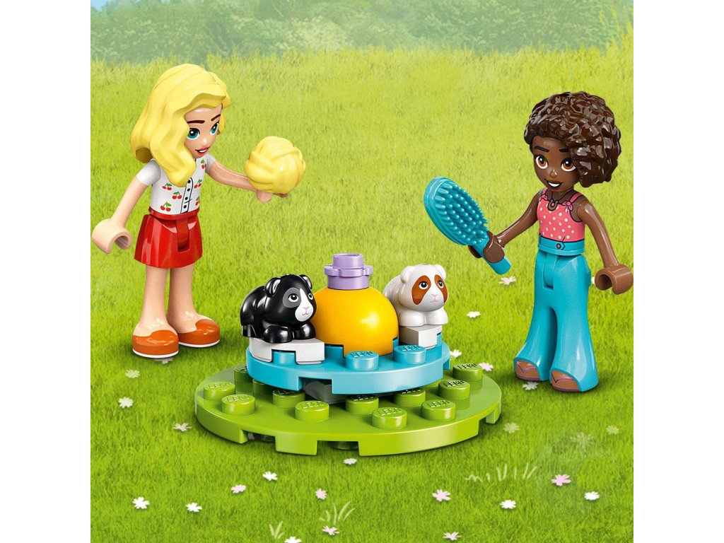 LEGO 42640 - Hřiště pro morčata z produktové řady LEGO FRIENDS - Dětská plastová stavebnice v krabici.Tuto stavebnici si zamilují holky, kluci a milovníci zvířat od 5 let, kteří si vymyslí vlastní dobrodružství s morčátky. Stavebnice Hřiště pro morčata obsahuje 2 minipanenky LEGO Friends a 2 figurky morčat, se kterými si užijete hodiny zábavy. Tato stavebnice se zvířátky obsahuje vše, co zodpovědný majitel domácího mazlíčka potřebuje, včetně prostoru na hraní, krmení, kartáčování a odpočinek. Vezměte morčátka na skluzavku nebo je roztočte na kolotoči. Až bude čas na odpočinek, pomozte mazlíčkům uvelebit se v prostoru na spaní. Součástí stavebnice je řada doplňků, včetně štětce, slunečnicových semínek, listů a klubíčka příze, a sada tak představuje zábavný dárek pro malé milovníky zvířat.