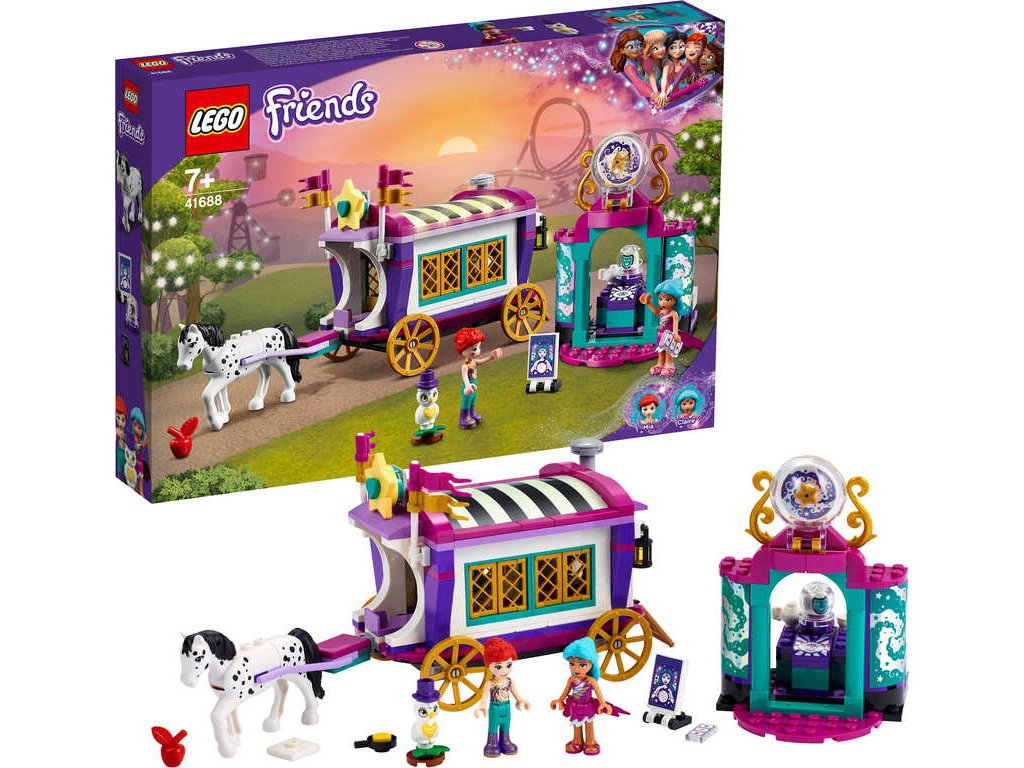 LEGO 41688: Kouzelný karavan z produktové řady LEGO FRIENDS - Dětské plastové kostky v krabici.Hledáte vhodný dárek pro děti, které mají rády kouzla a tajemno? Potěšte je stavebnicí LEGO Friends Kouzelný karavan. Tato skvělá sada obsahuje model maringotky, věštecký stan, 2 minipanenky a figurky